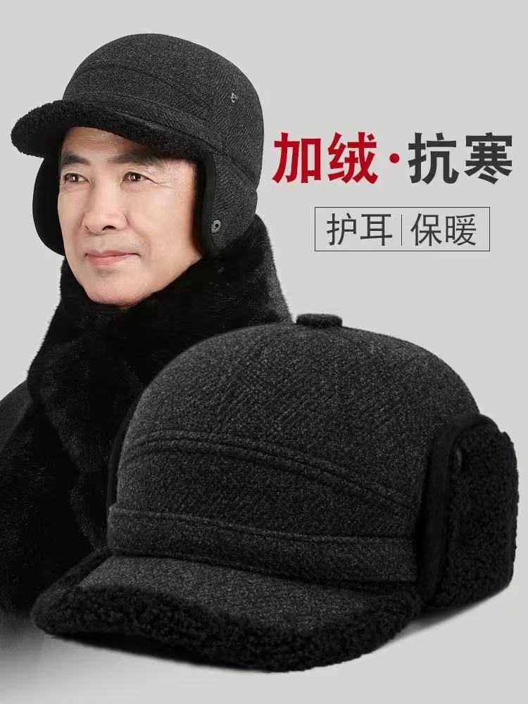 "product_name": "秋冬新款保暖雷锋帽男士爸爸户外休闲加厚中老年人加绒帽子护耳帽",