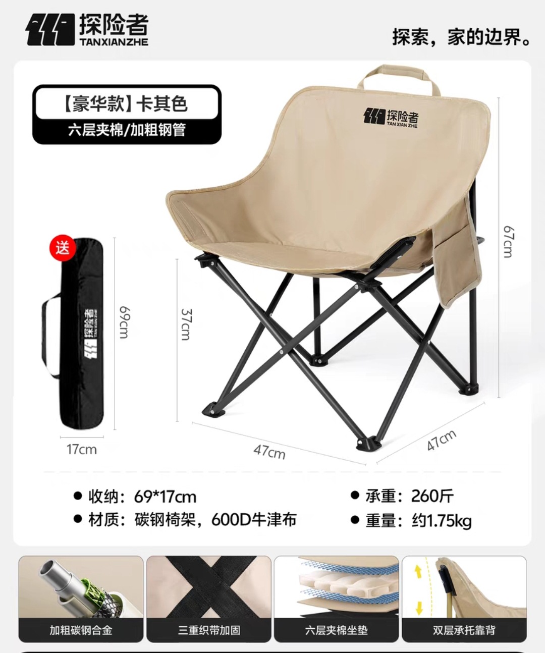 "name": "04【豪华款★卡其色】六层夹棉+3重织带加固+加粗钢管",