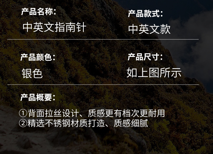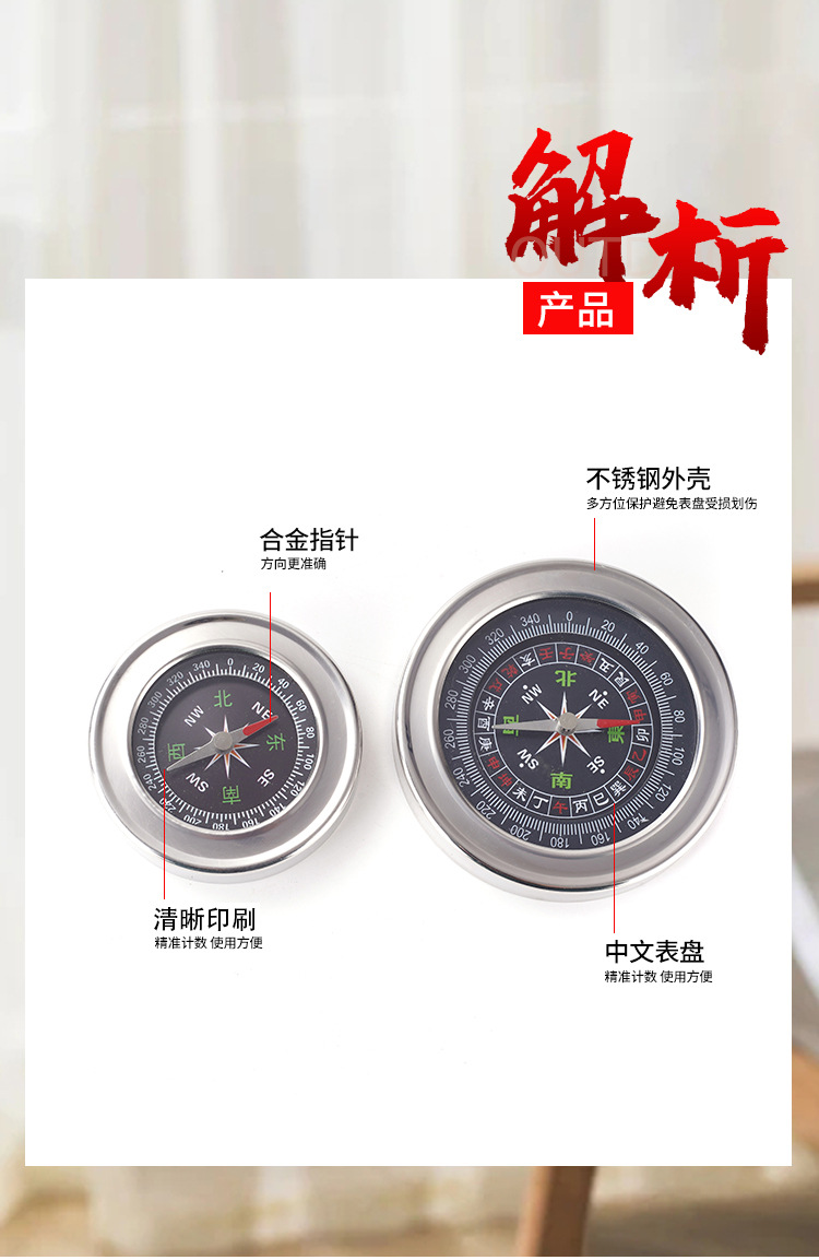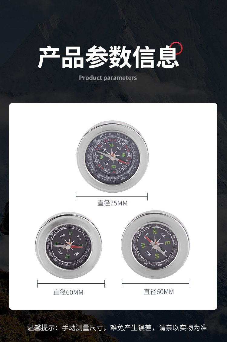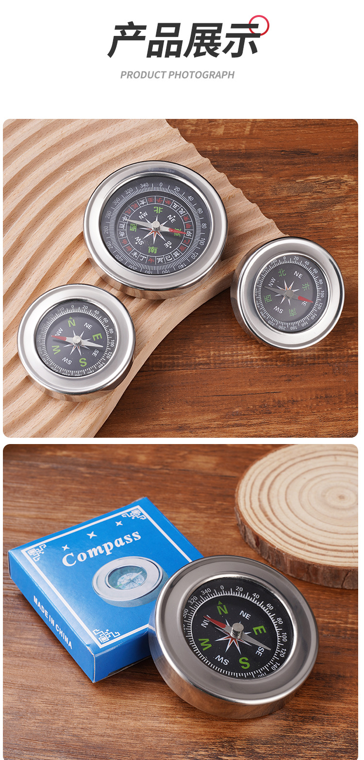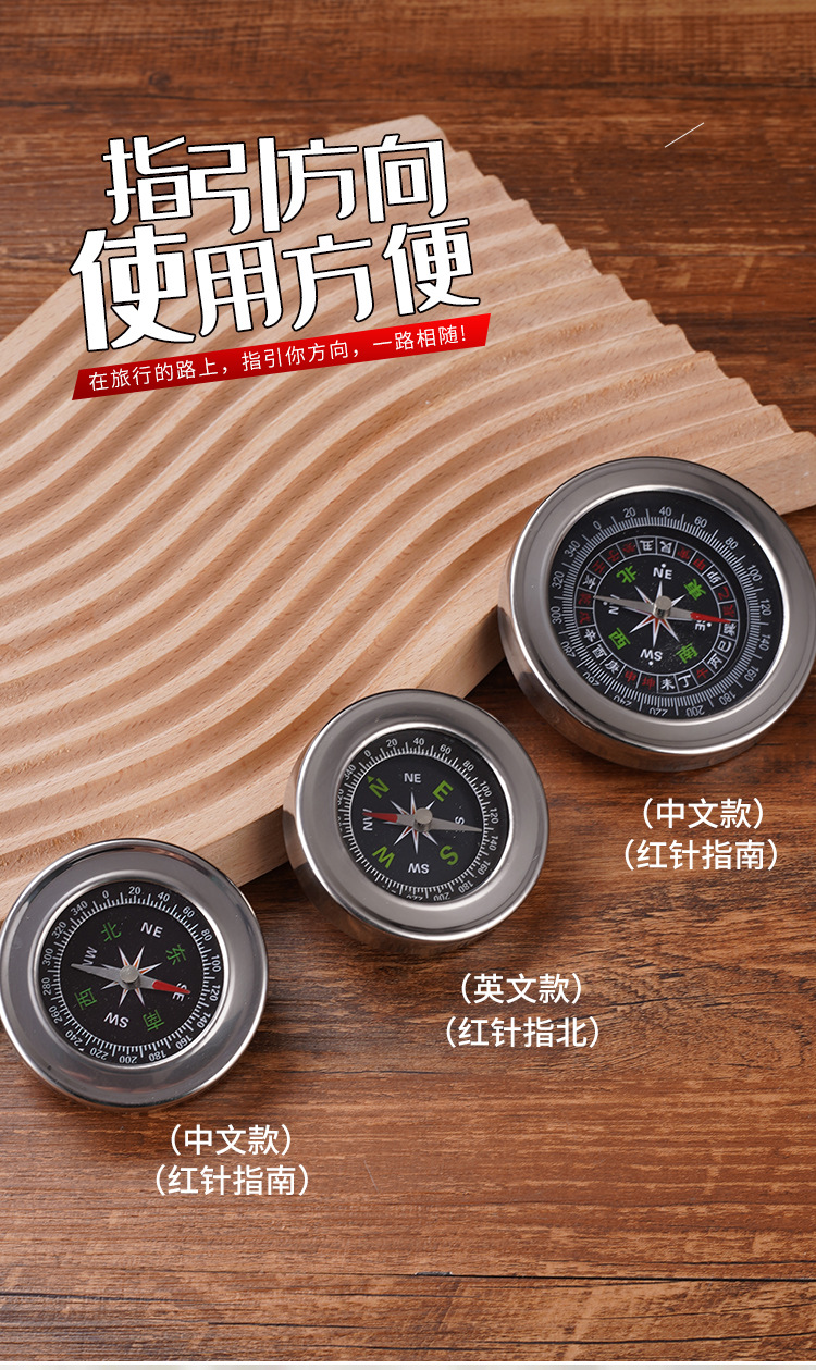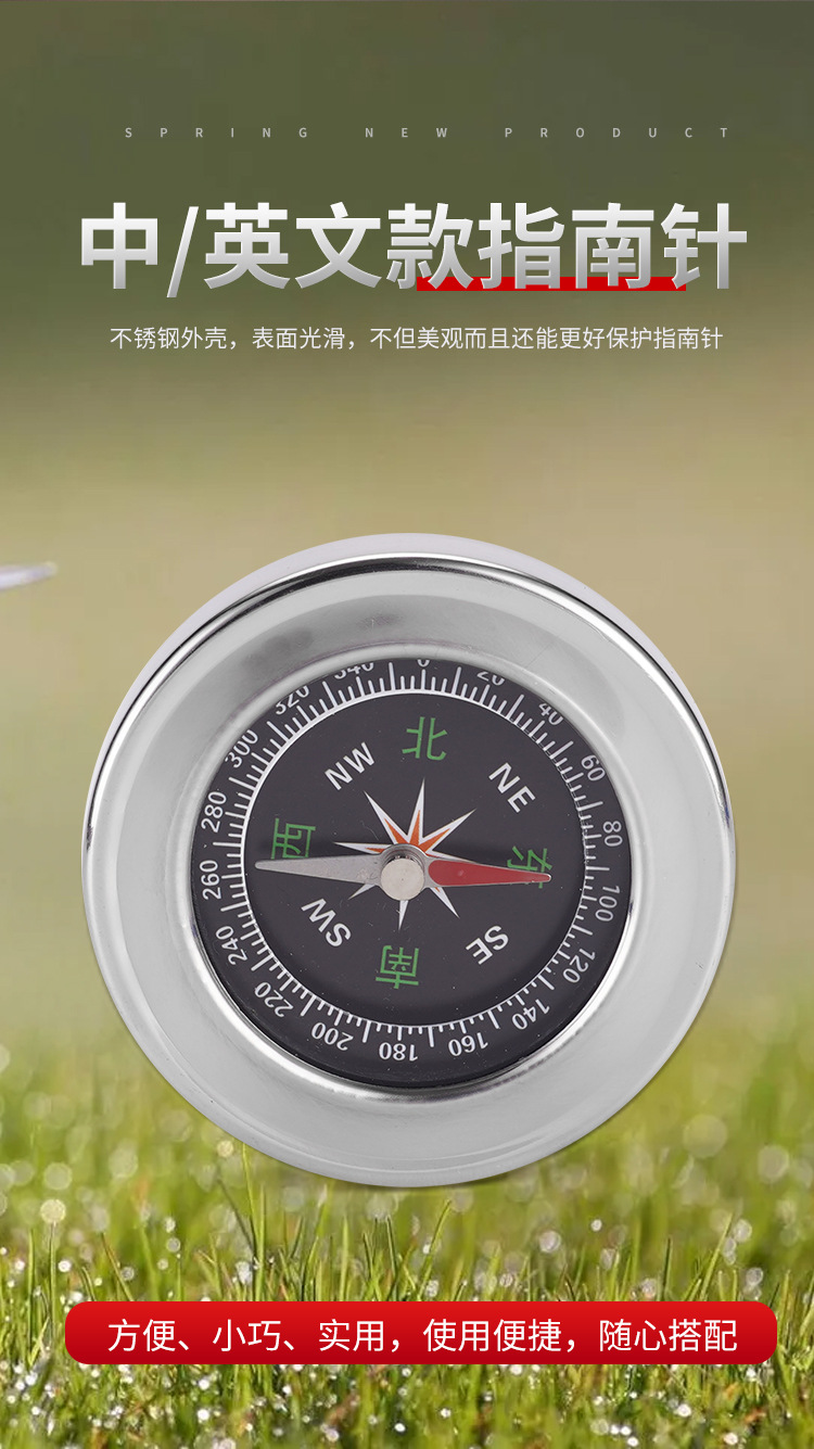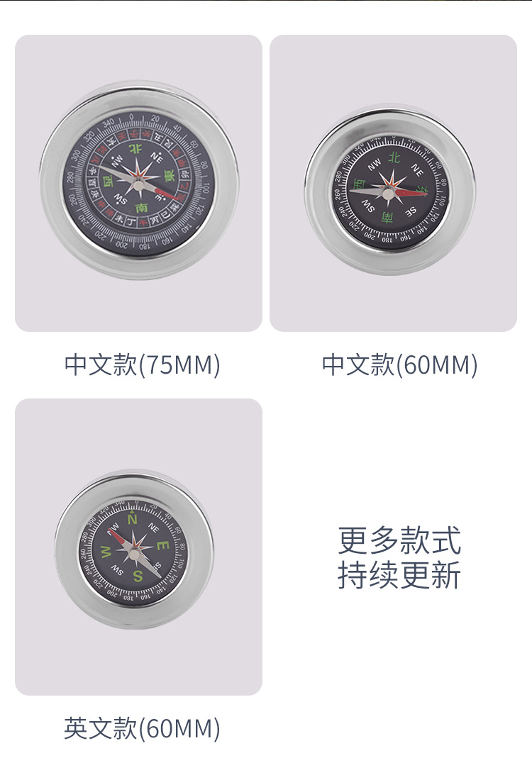 "product_name": "指南针厂家中英文面板户外便携迷你指北针75mm不锈钢金属指南针",