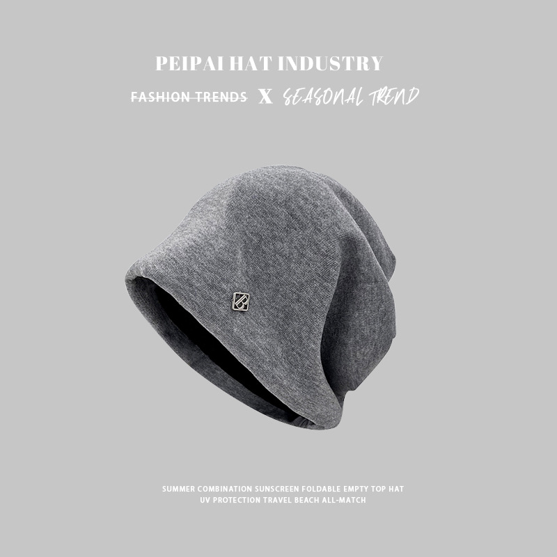 "18C4296字母B标纯色堆堆帽 灰色": {