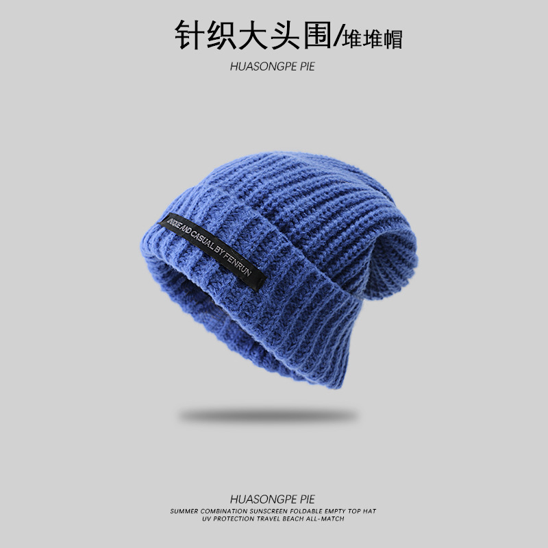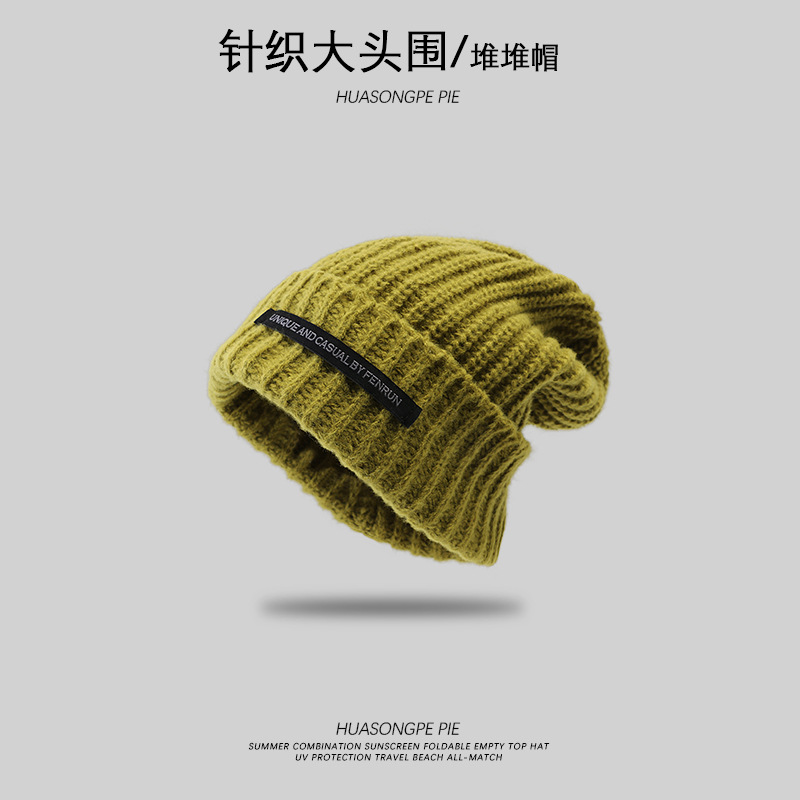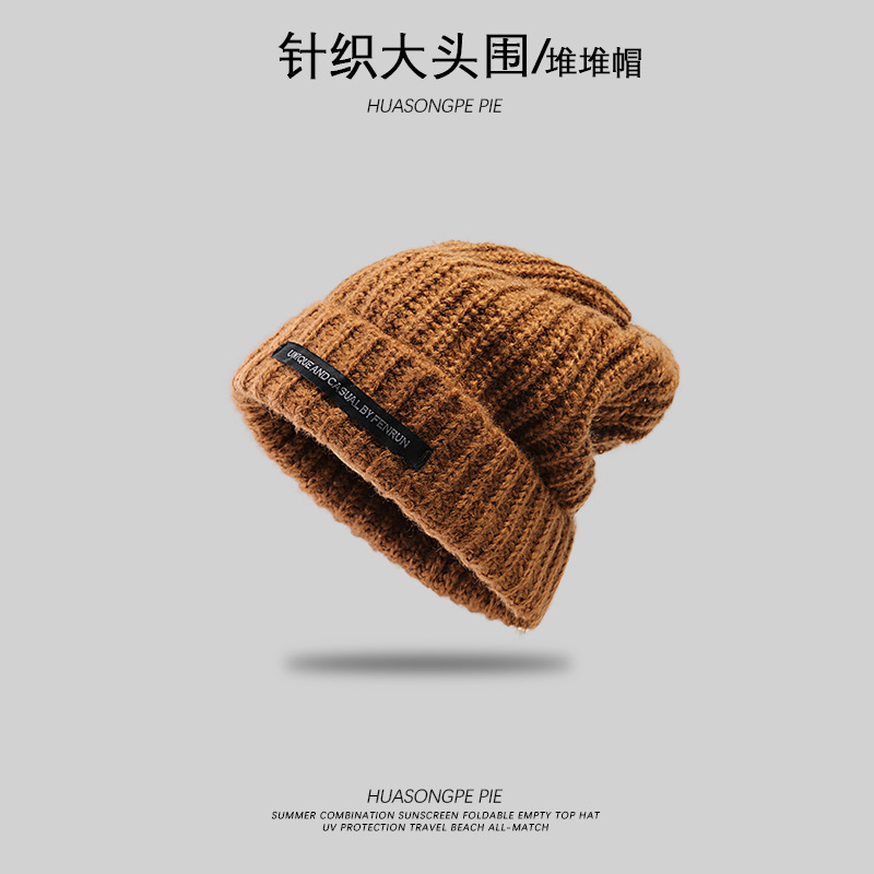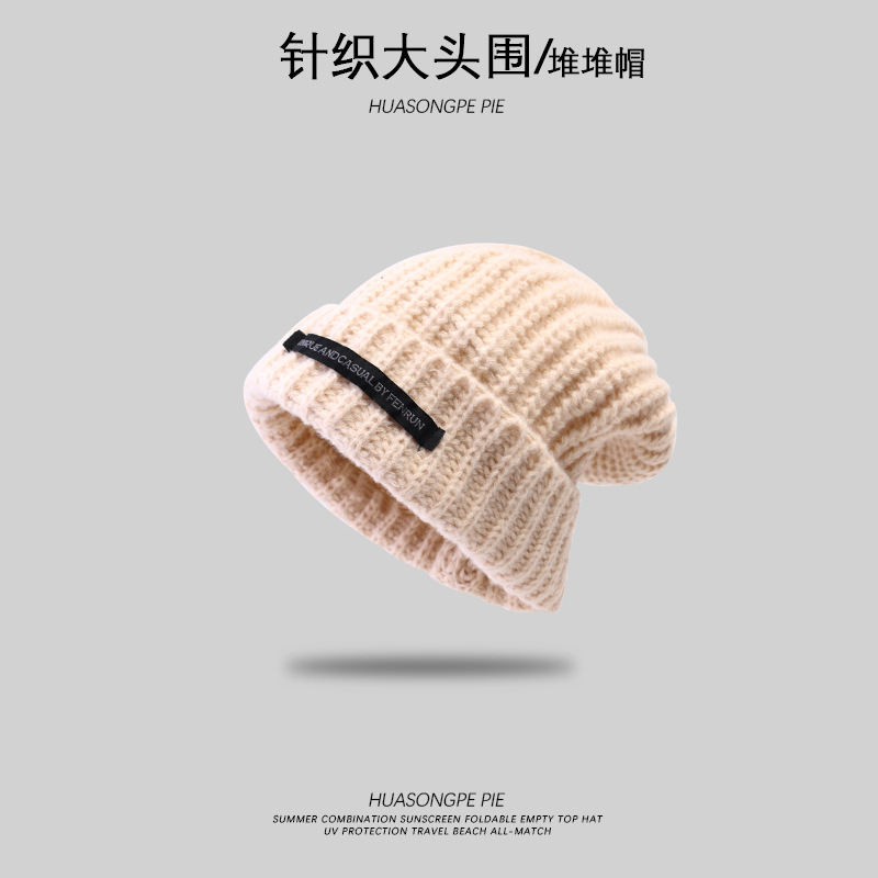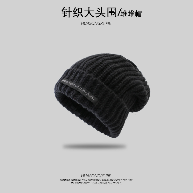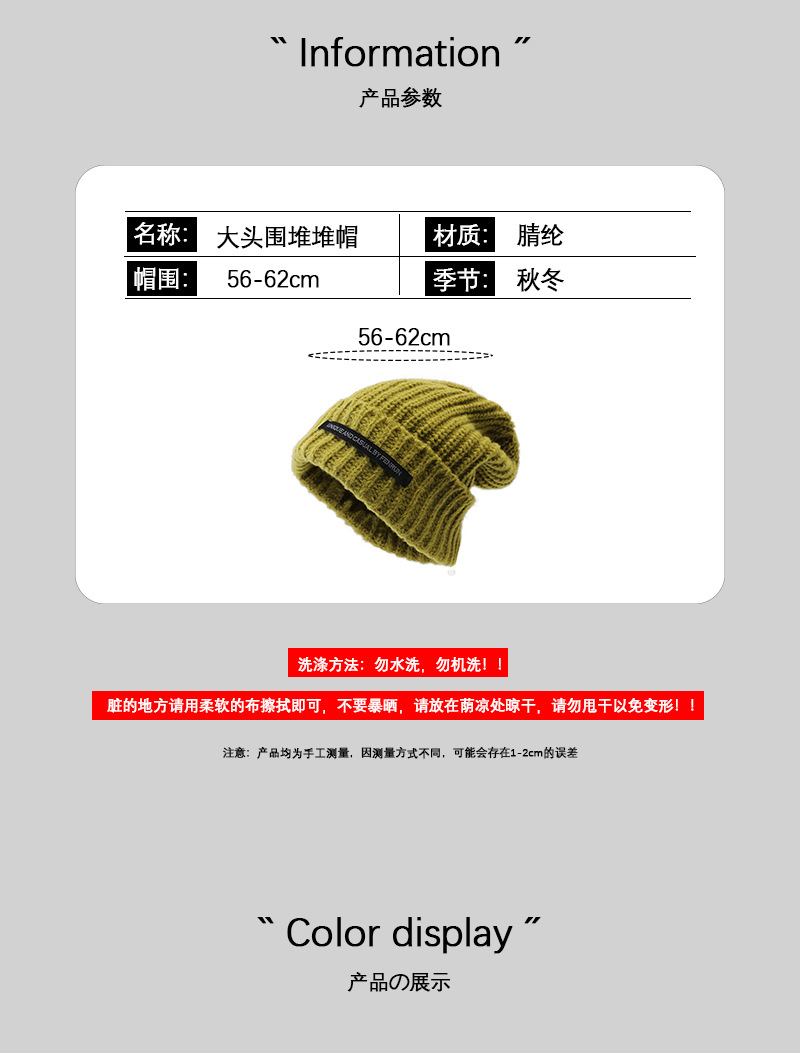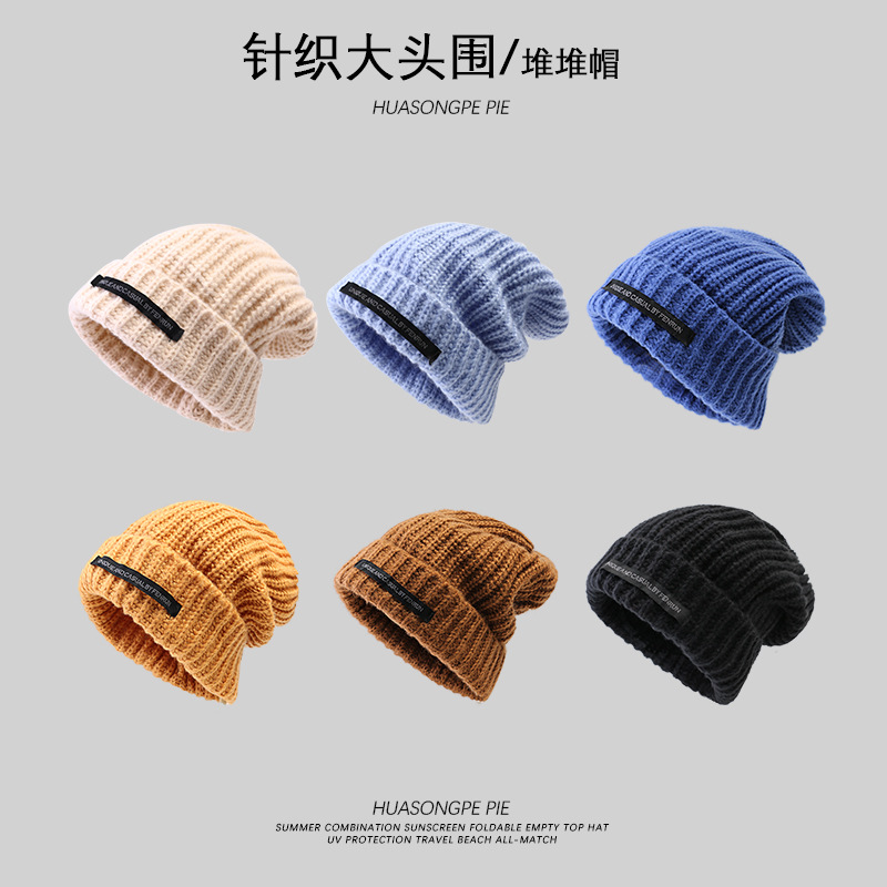 "product_name": "针织帽冬季大头围保暖堆堆帽女防寒宽松出行加厚毛线帽户外冷帽男",