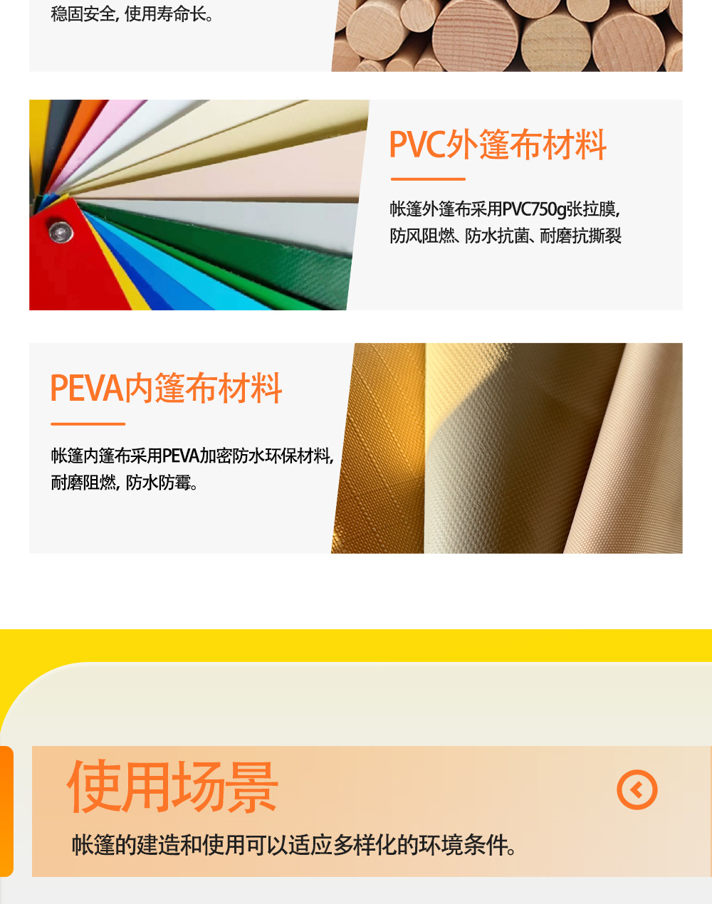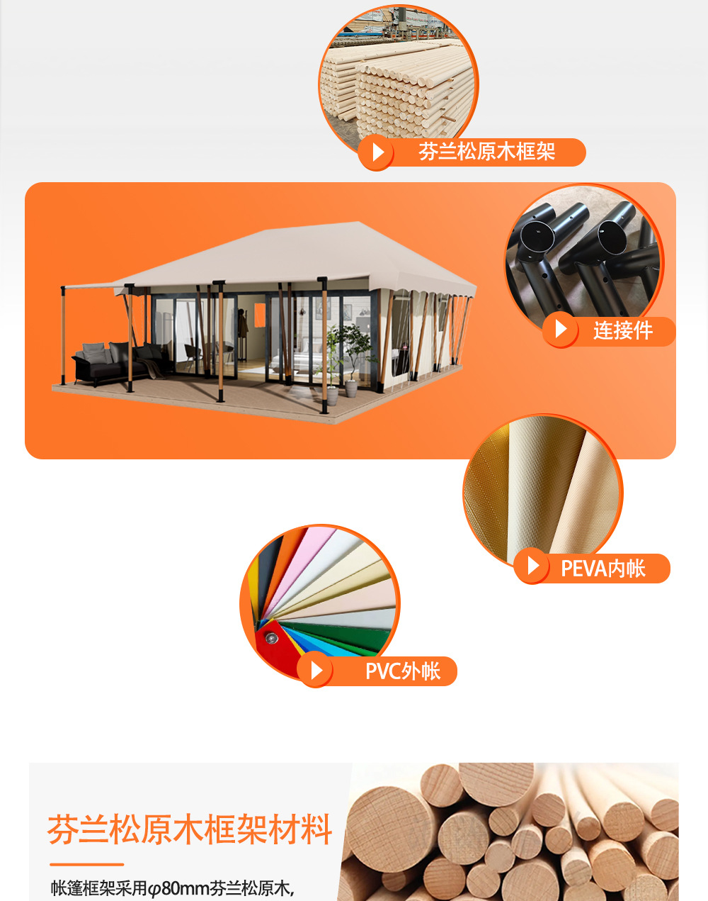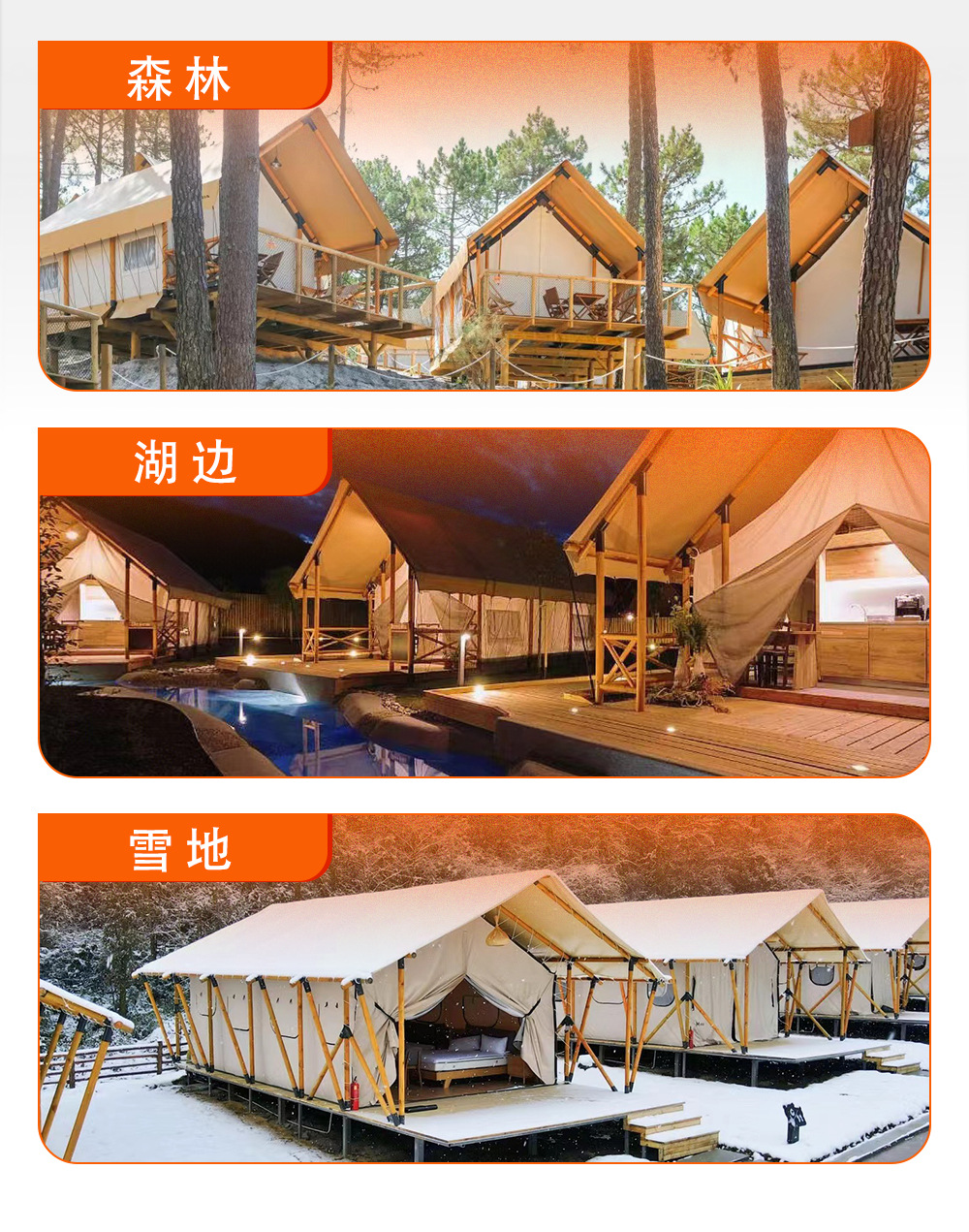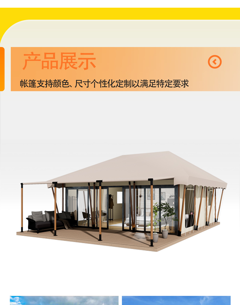 "product_name": "沐野户外钢结构防蚊虫露营帐篷酒店大型景区营地工厂遮阳景区专用",