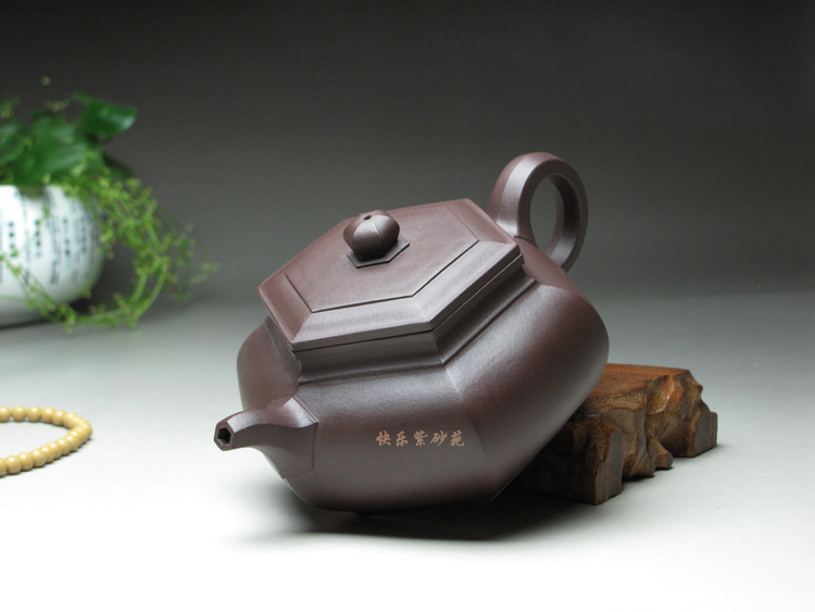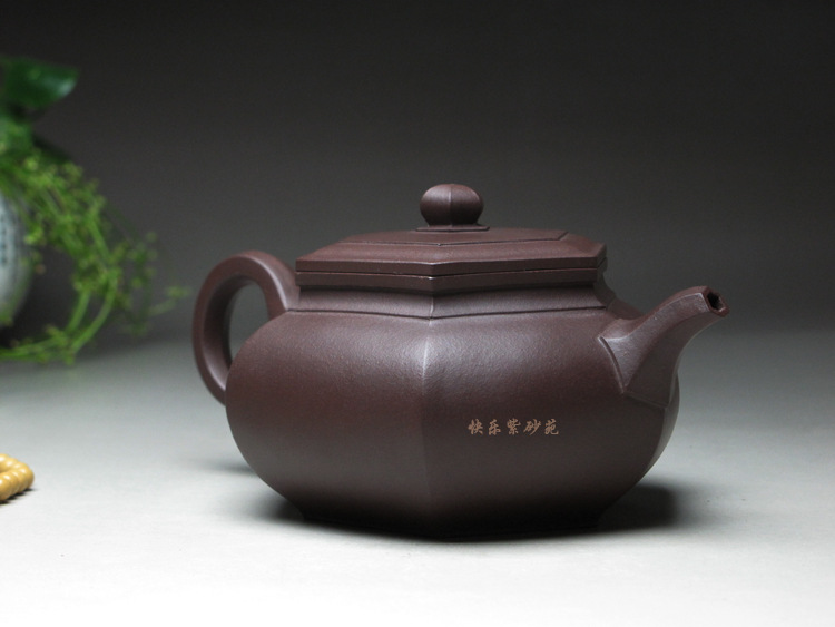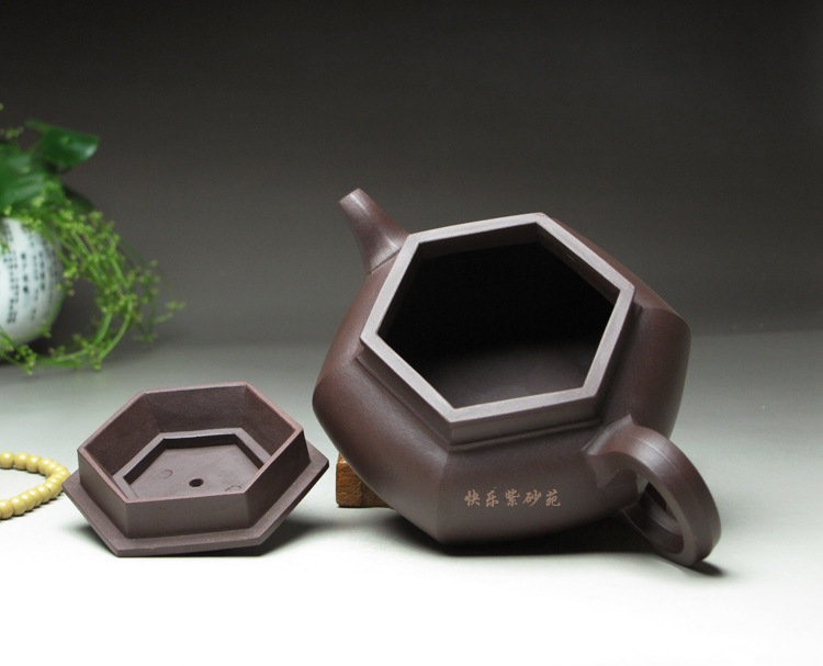 宜兴精品紫砂壶名家全手工赵国民原矿紫泥大彬六方大容量茶壶茶具