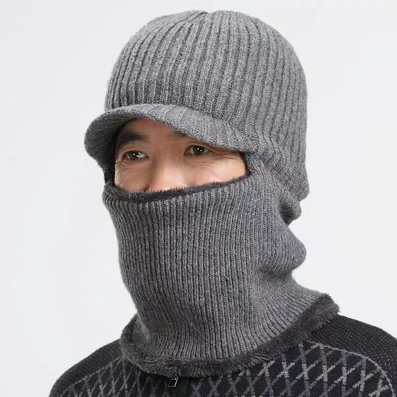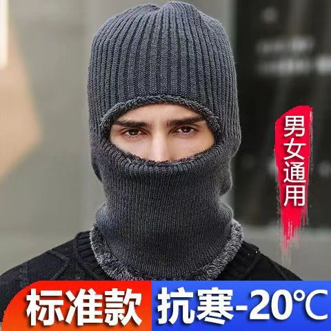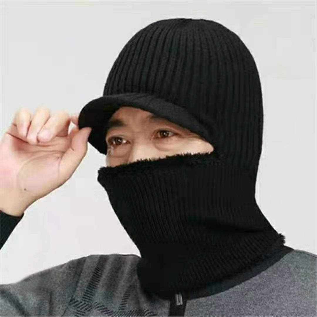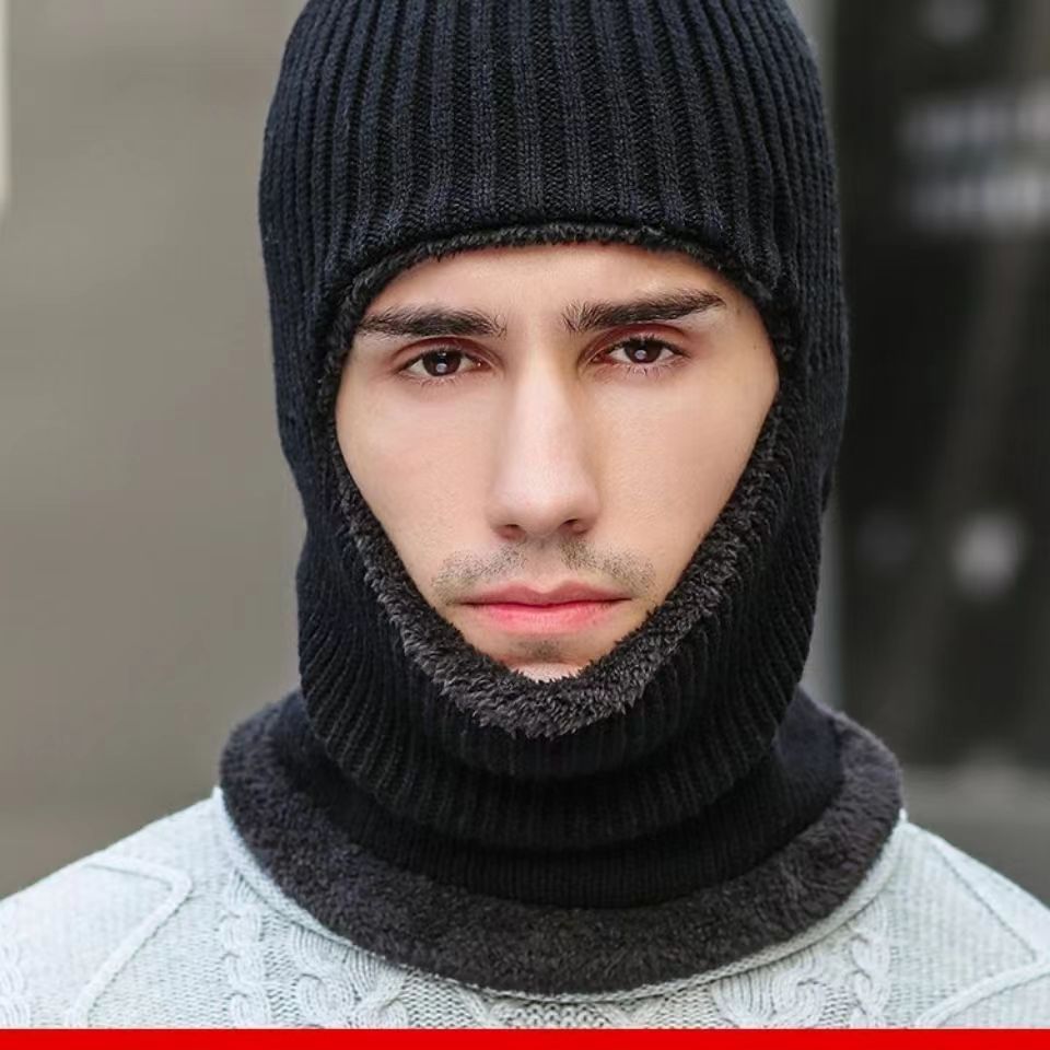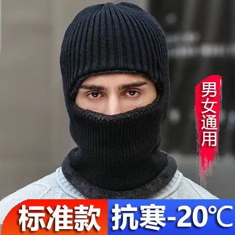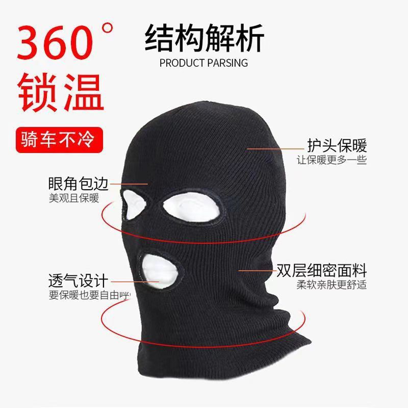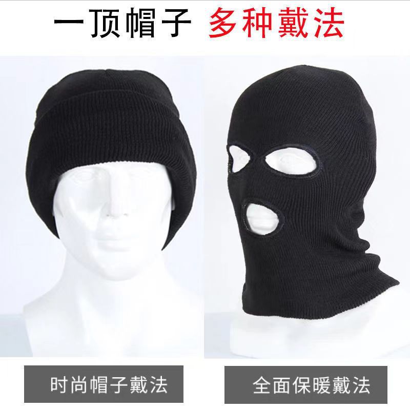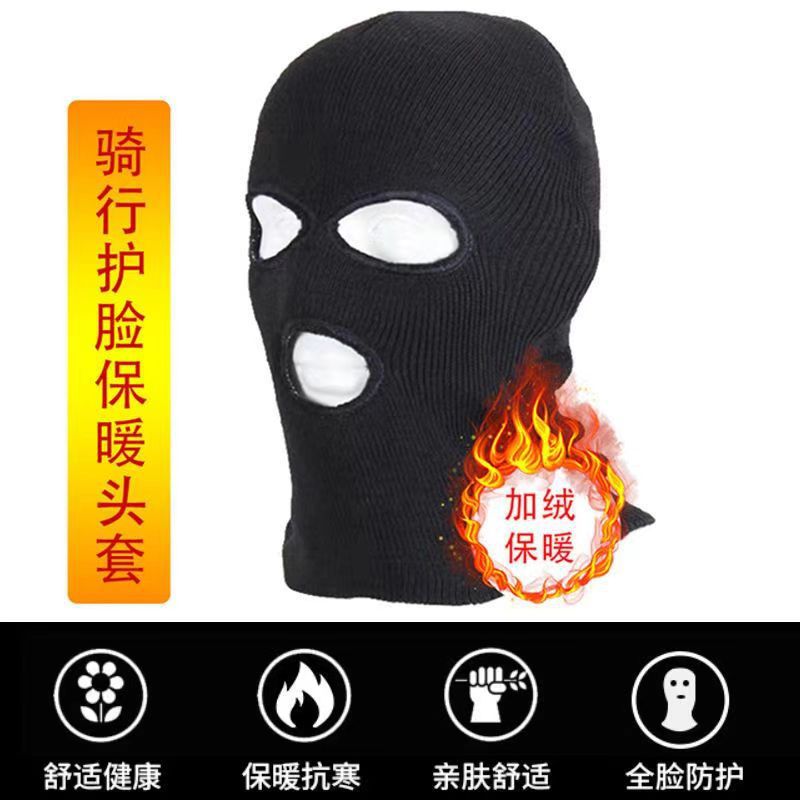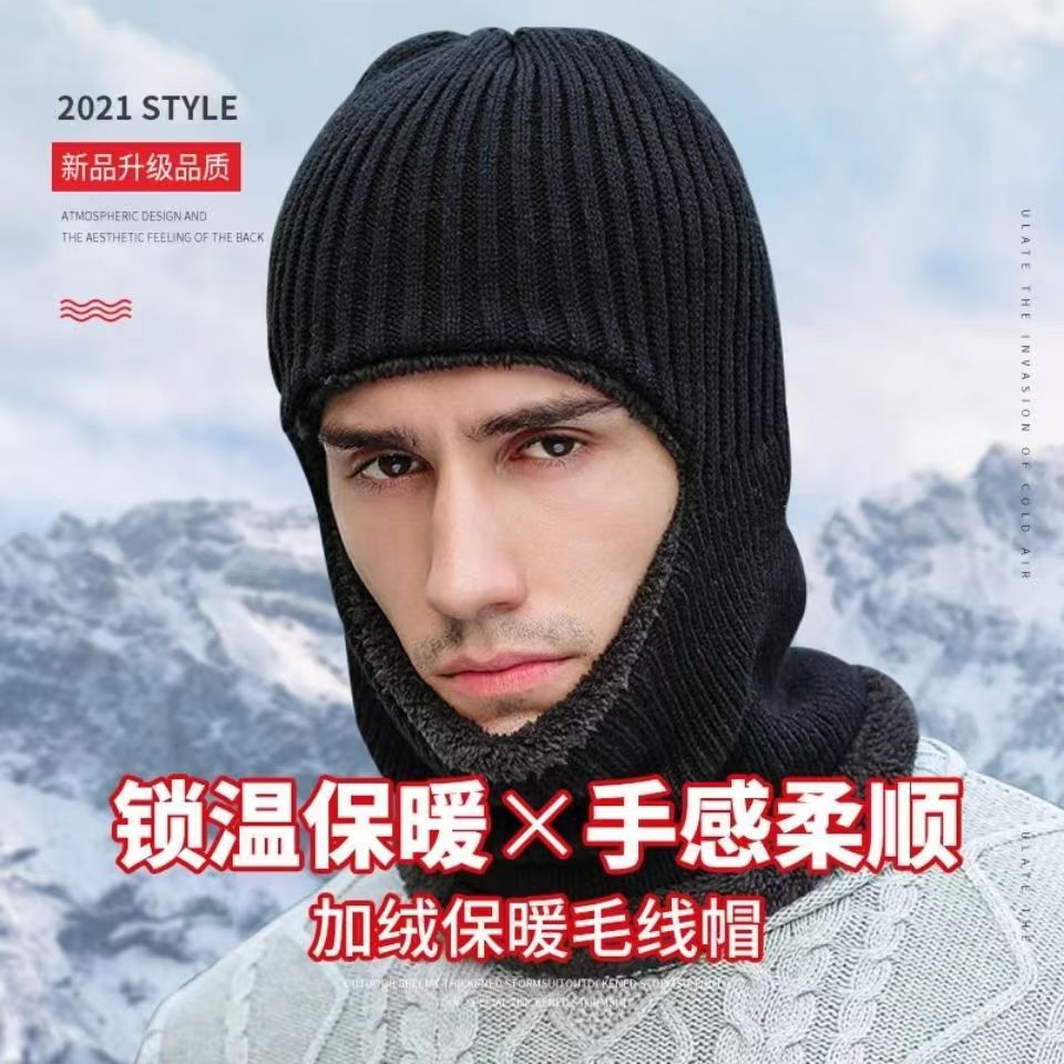 "product_name": "冬季连体帽加绒套头圆顶毛线针织三孔帽子户外防寒防风保暖棉帽子",