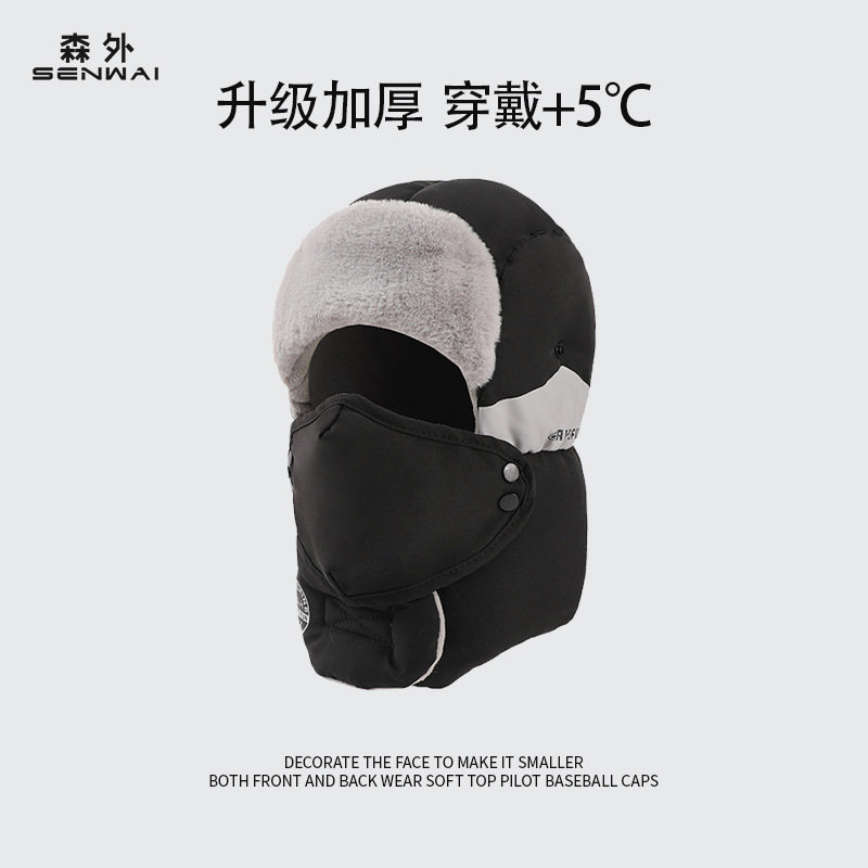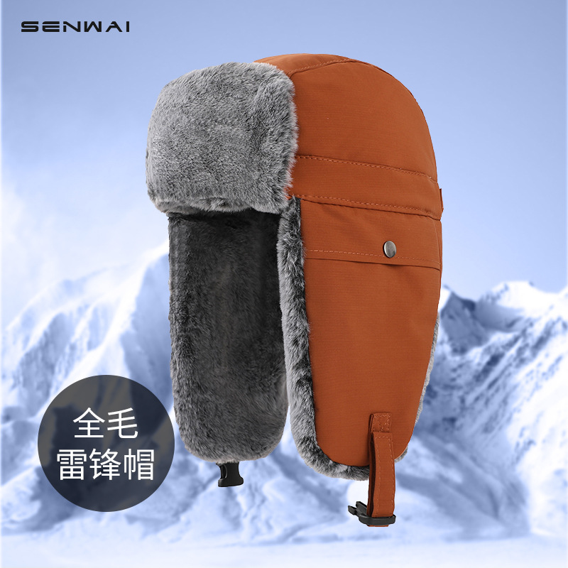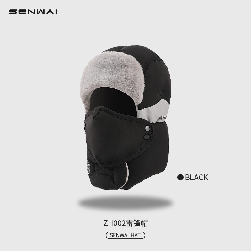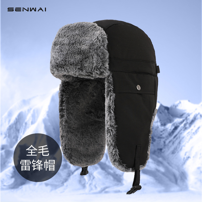 "product_name": "帽子男士冬季防风护耳户外雷锋帽男款东北防寒加绒加厚棉帽女面罩",