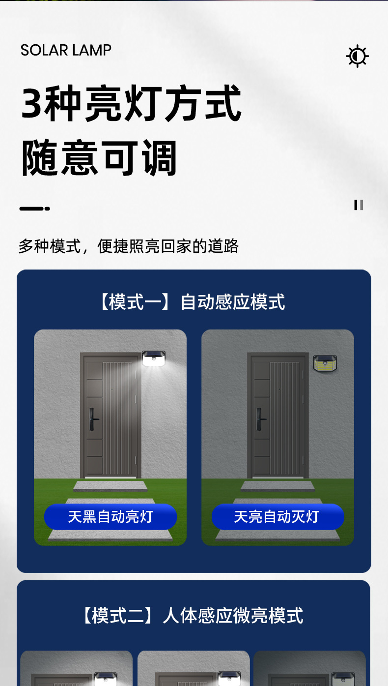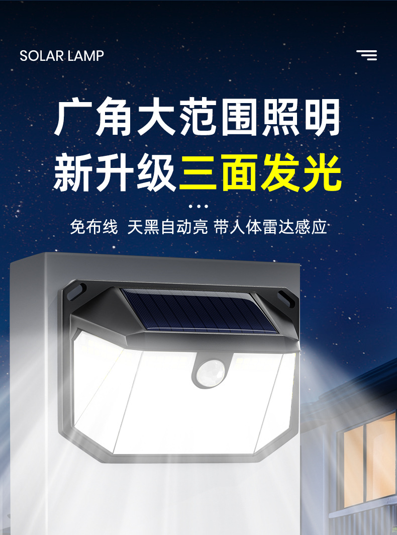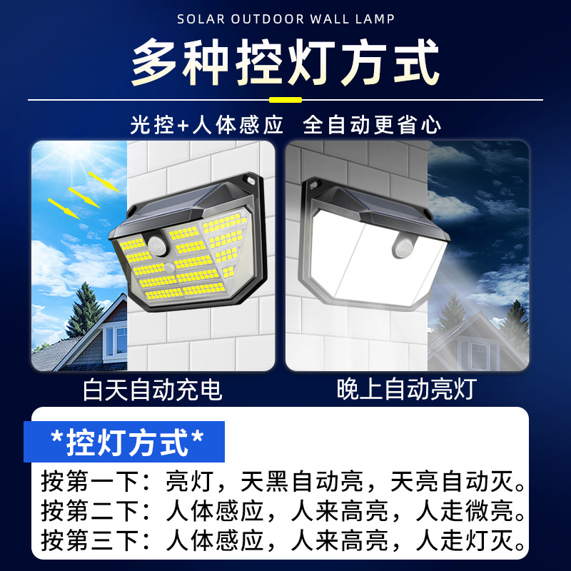 "product_name": "新款太阳能户外庭院灯家用农村院子室外防水人体感应照明路灯壁灯",