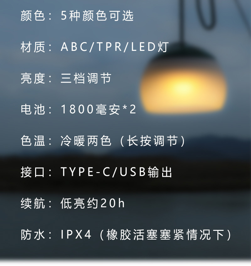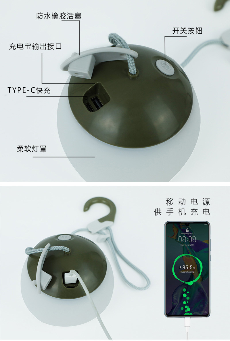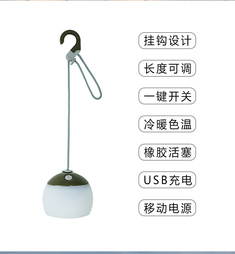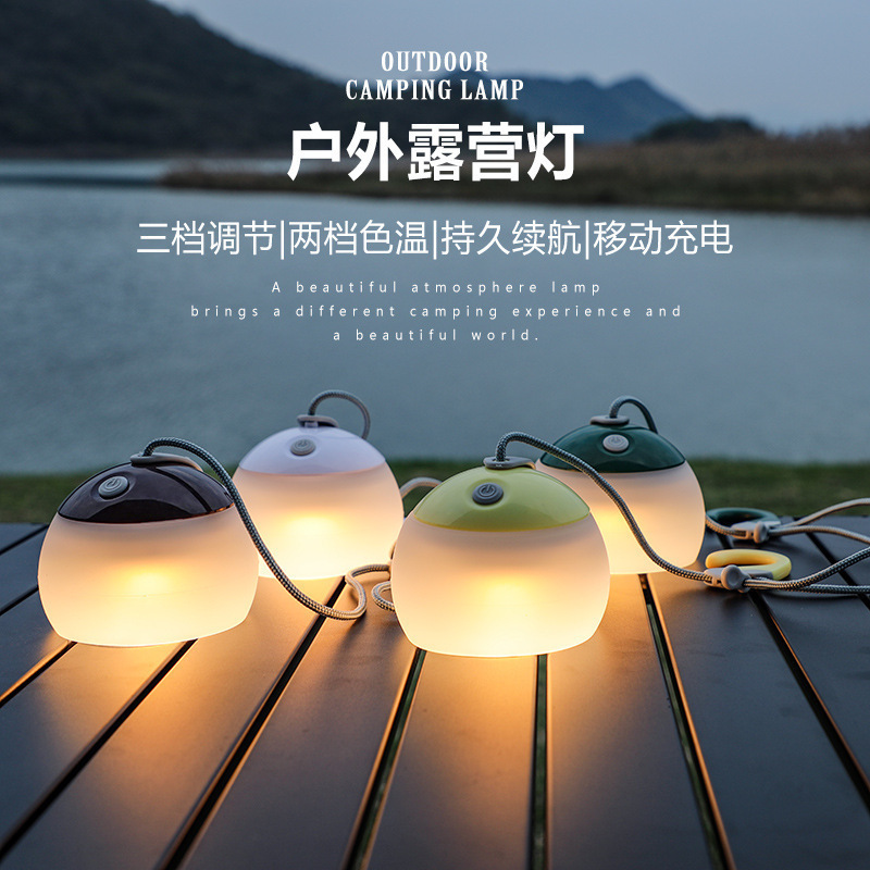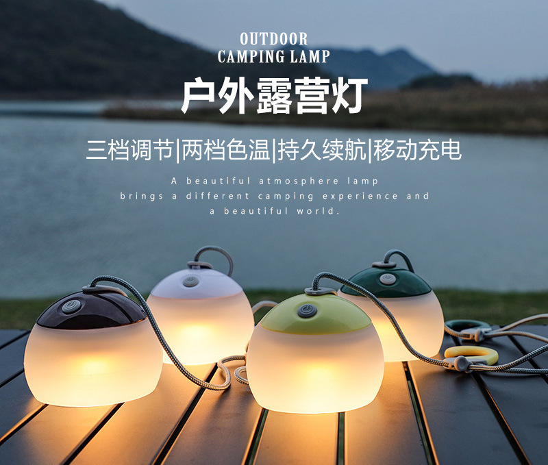 野营灯露营灯充电户外灯照明氛围灯LED防水Typec高亮冷暖硅胶挂灯