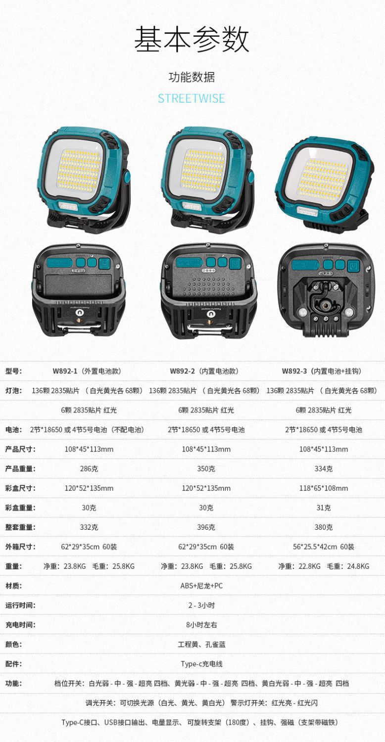 补光灯摆摊汽修烧烤COB工作灯充电户外照明投光灯磁铁LED露营灯