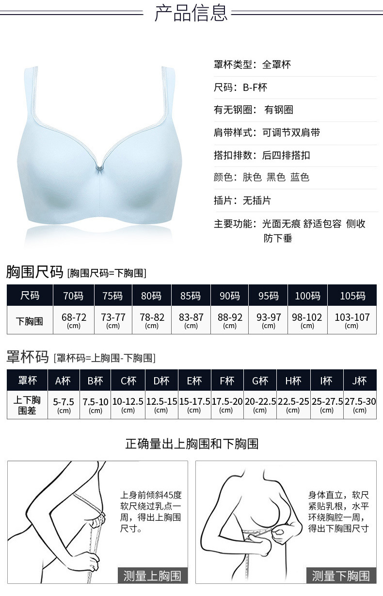 跨境大码文胸高端无痕内衣女调整型收副乳防下垂舒适光面薄款胸罩