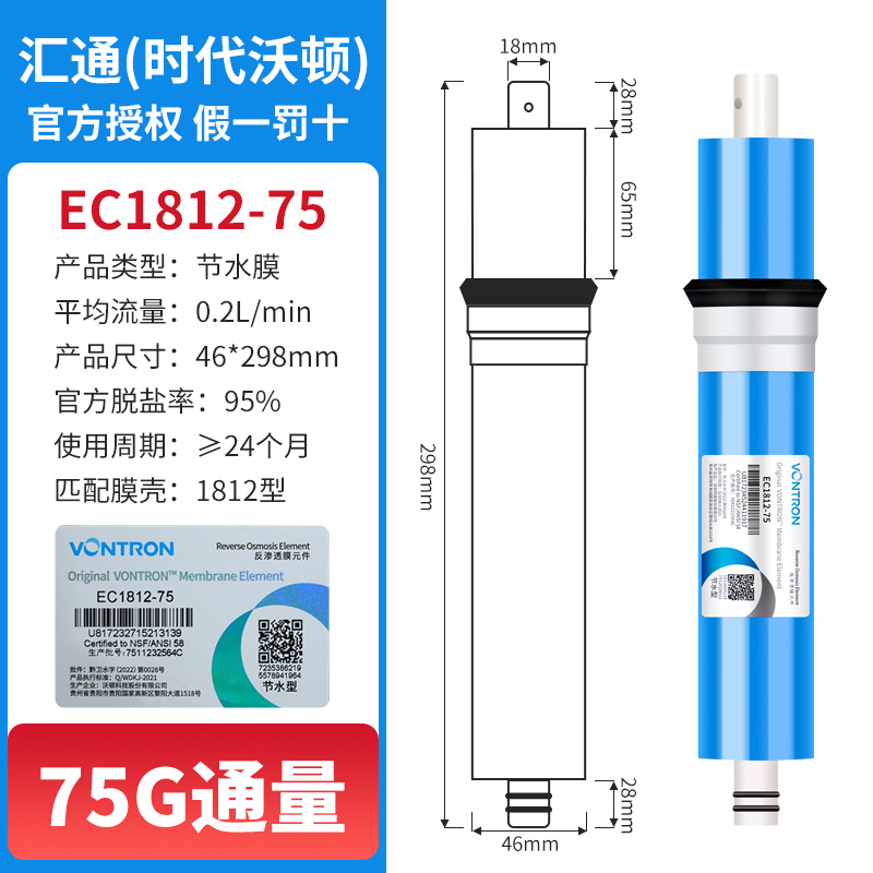 "product_name": "时代沃顿汇通反渗透膜RO膜50G75G100G400G600G净水器纯水机滤芯",