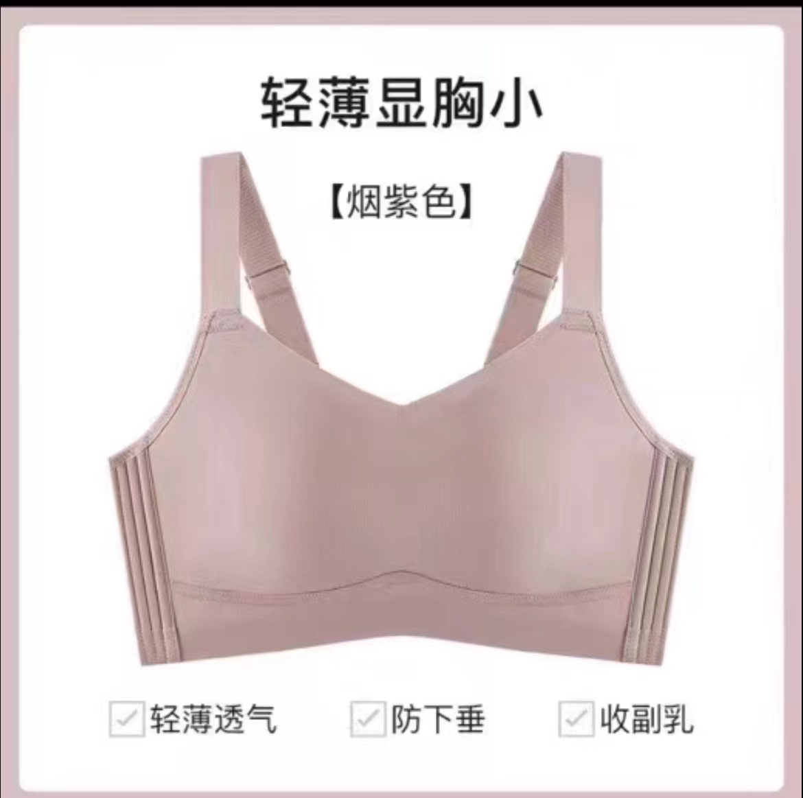 "product_name": "内衣大胸显小收副乳聚拢无痕上托矫正无钢圈缩胸冬季显小薄款文胸",