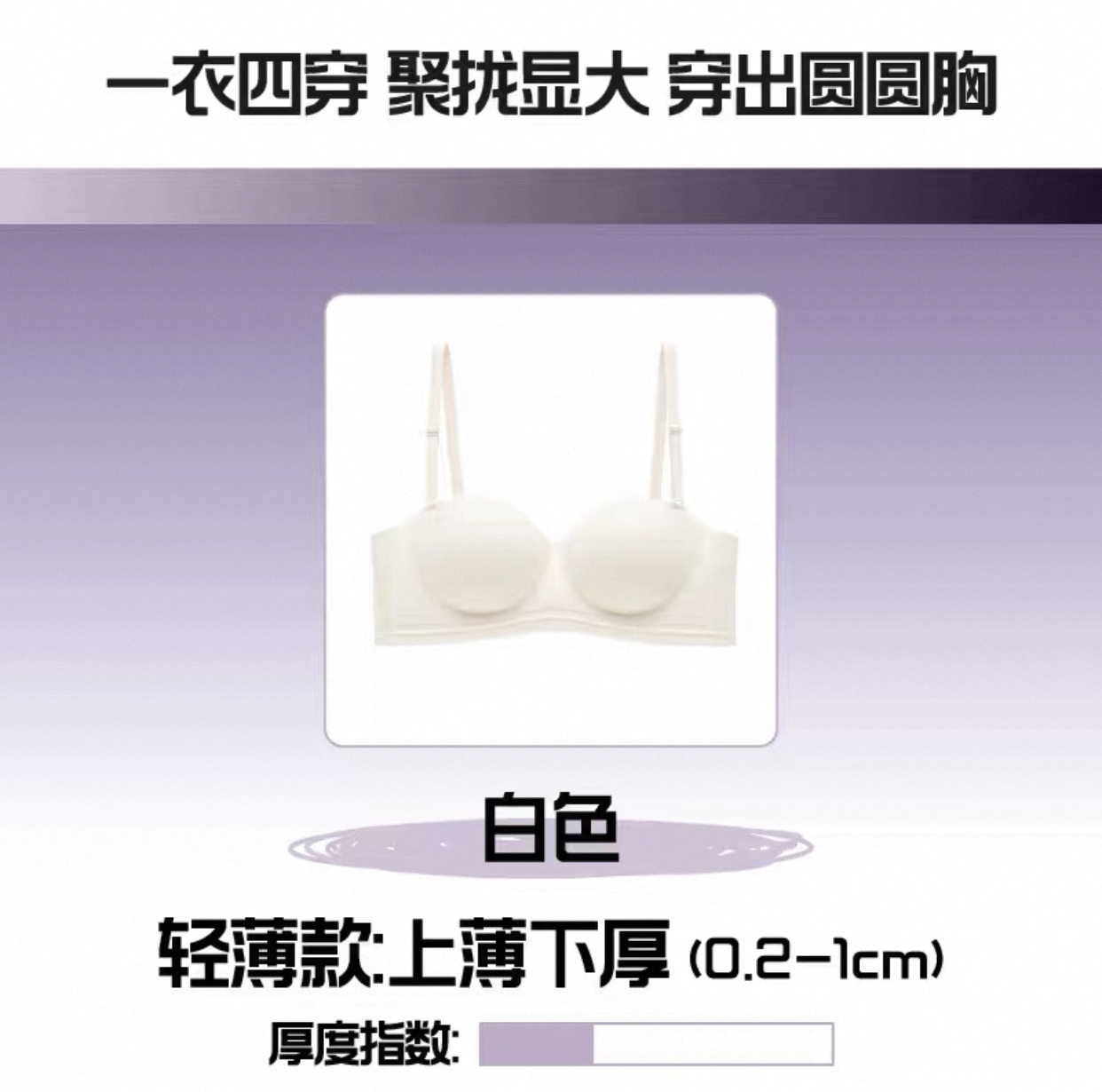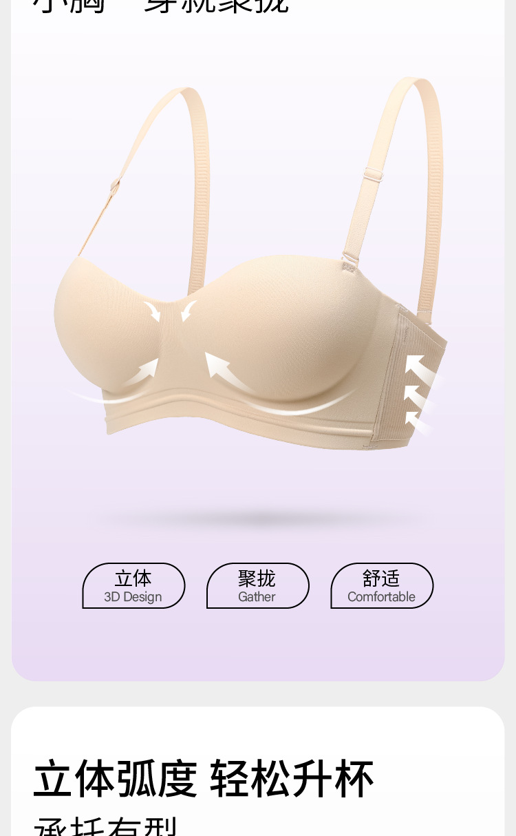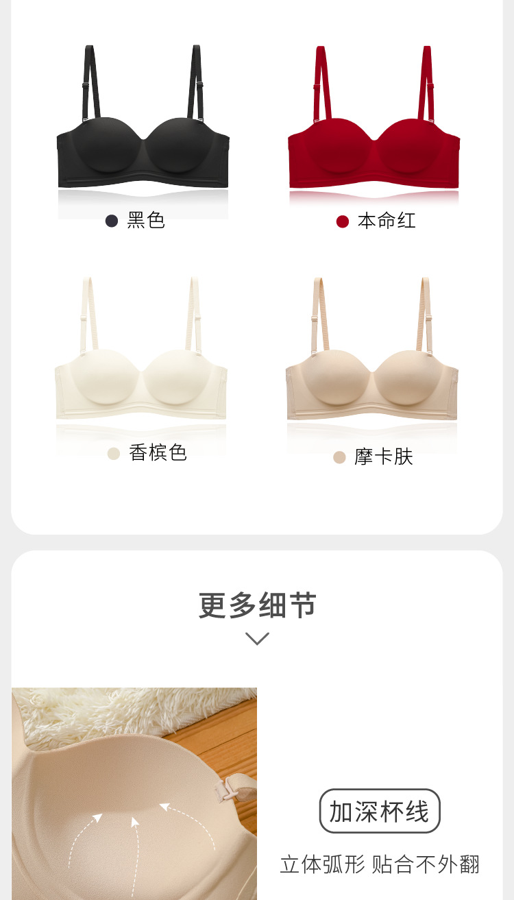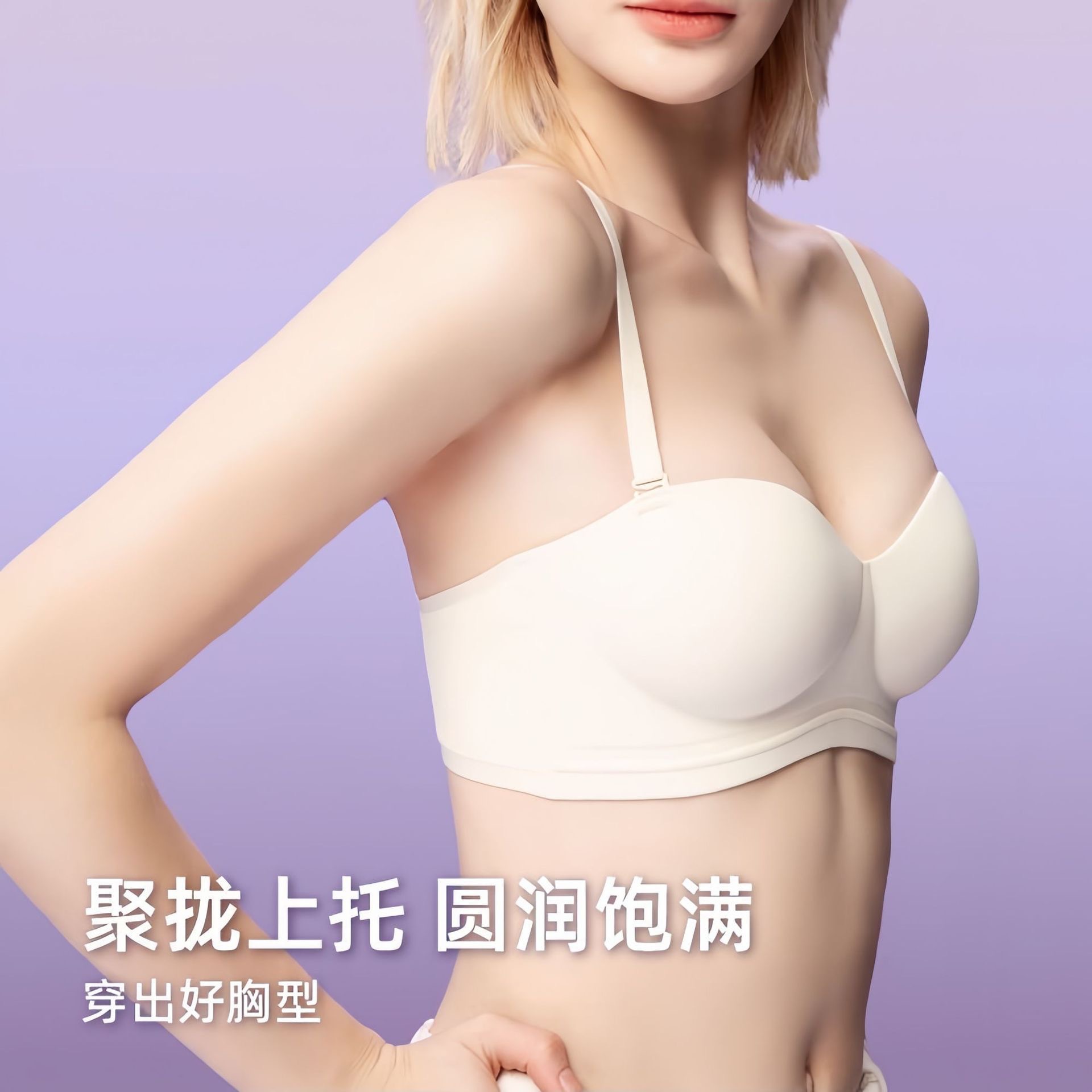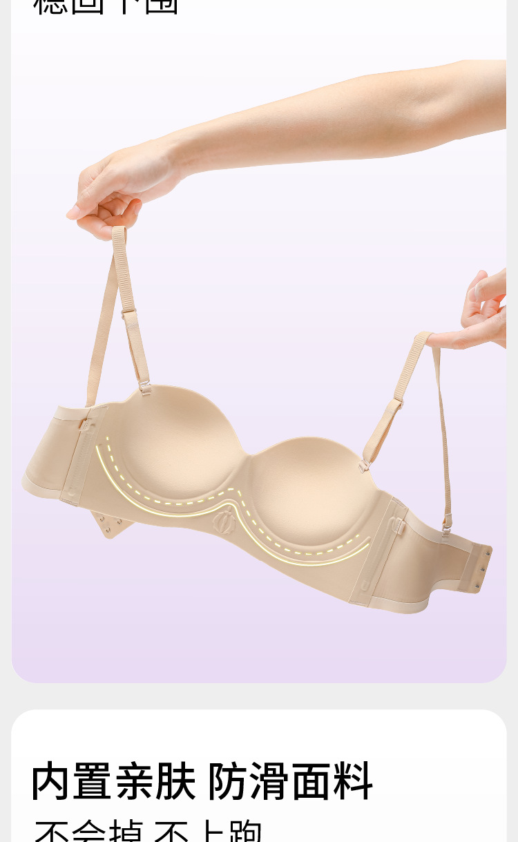 "product_name": "无肩带半杯内衣蹦迪不掉女防滑小胸聚拢显大无痕抹胸无钢圈文胸罩",