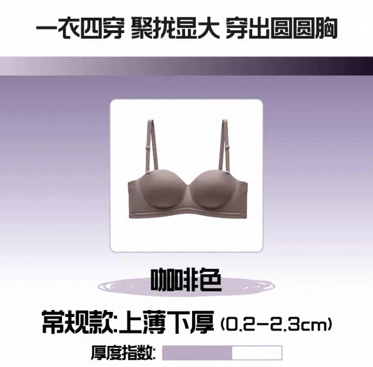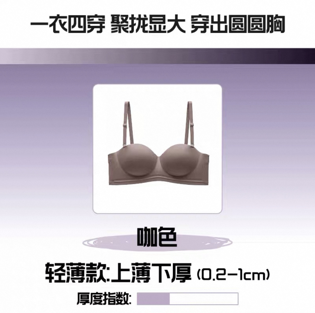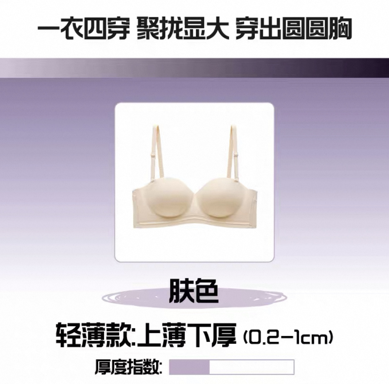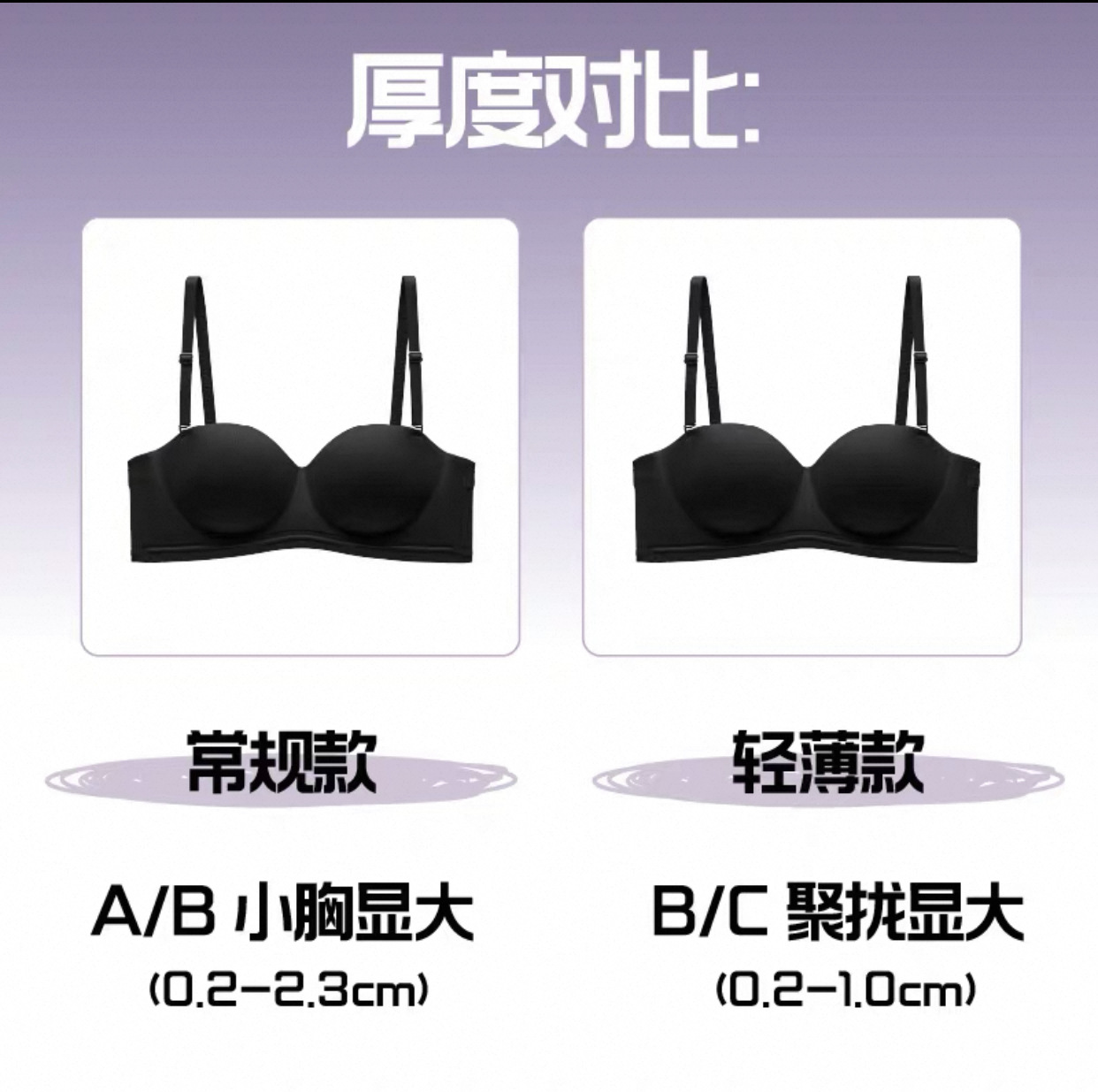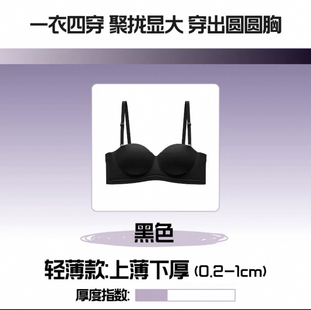 "product_name": "无肩带半杯内衣蹦迪不掉女防滑小胸聚拢显大无痕抹胸无钢圈文胸罩",