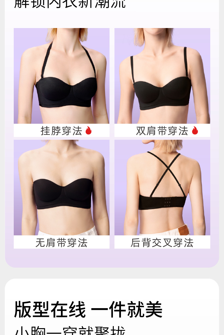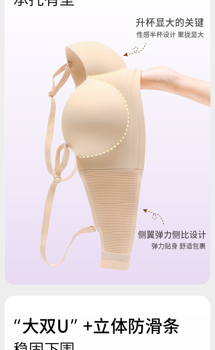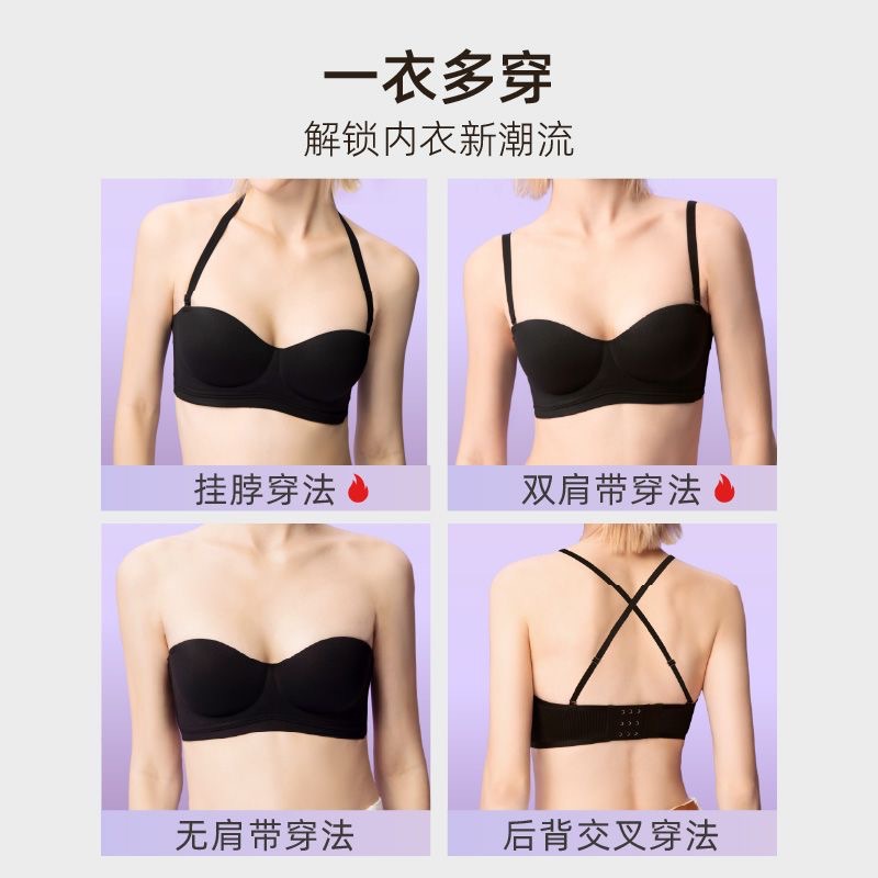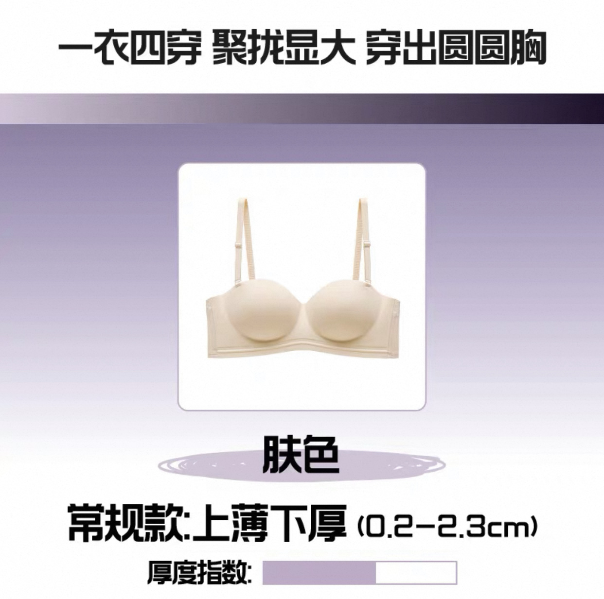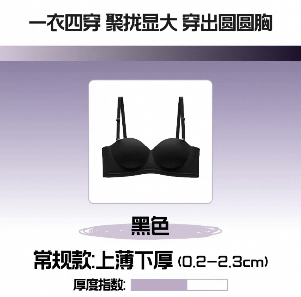 "product_name": "无肩带半杯内衣蹦迪不掉女防滑小胸聚拢显大无痕抹胸无钢圈文胸罩",