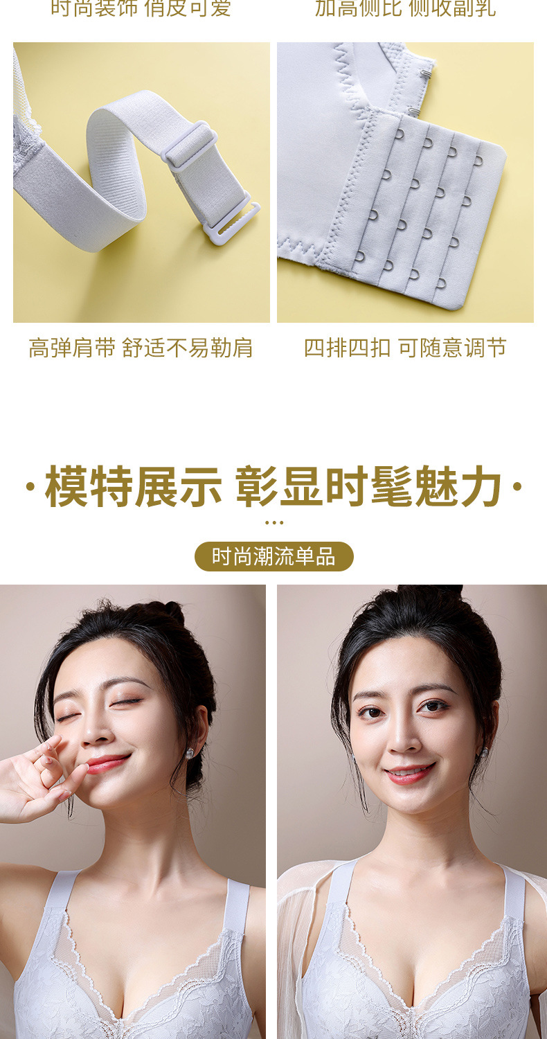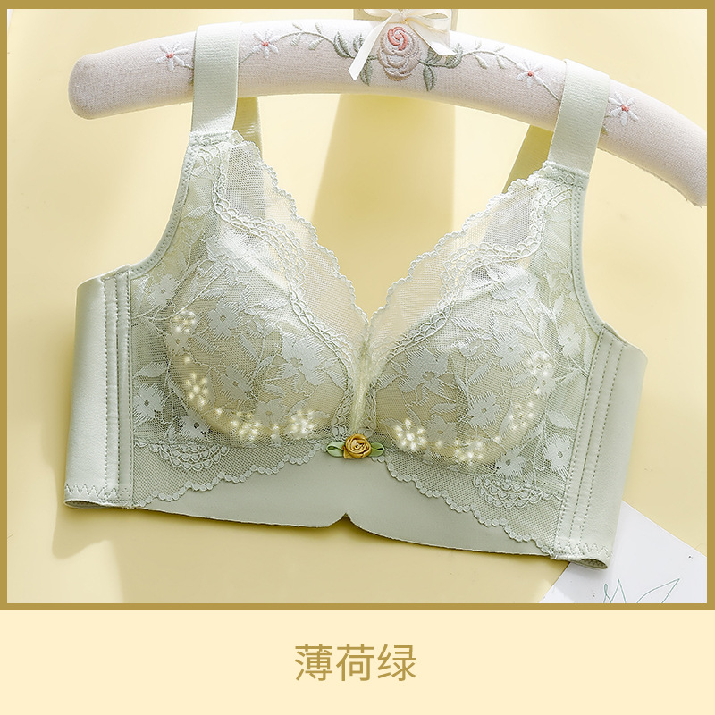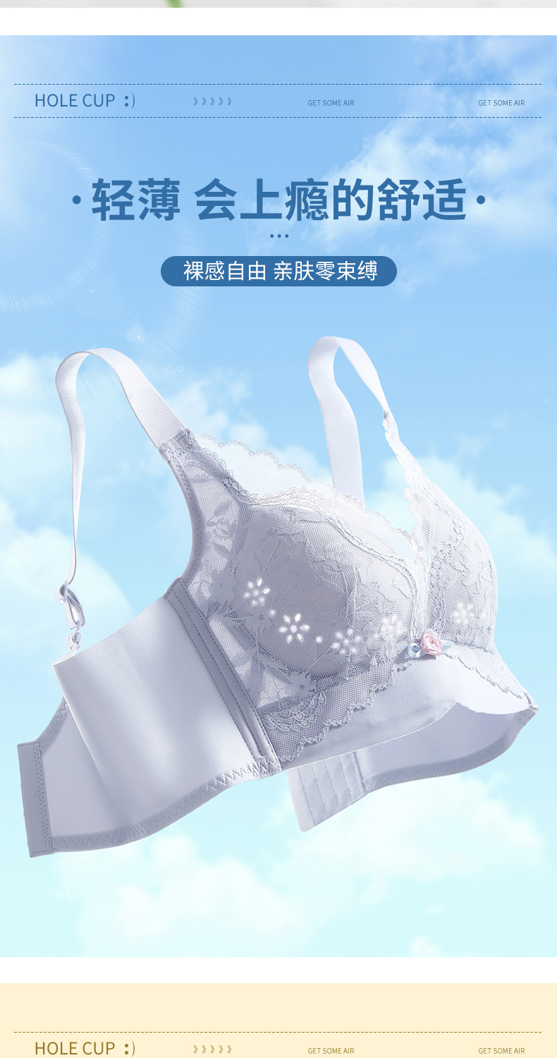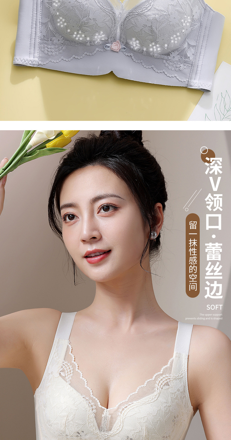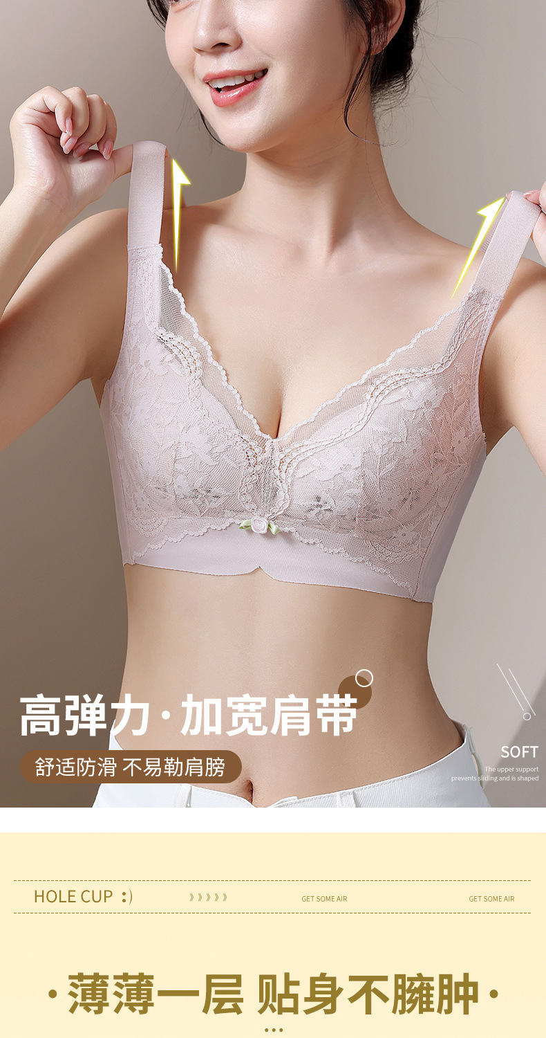 无痕内衣女夏薄款大胸显小聚拢防下垂收副乳内衣女士蕾丝文胸罩