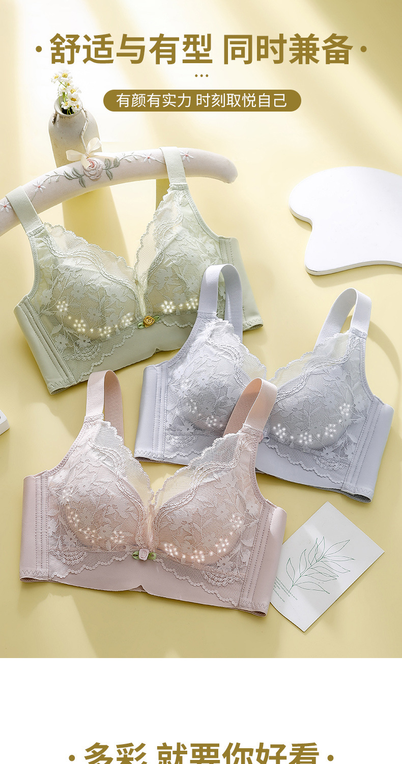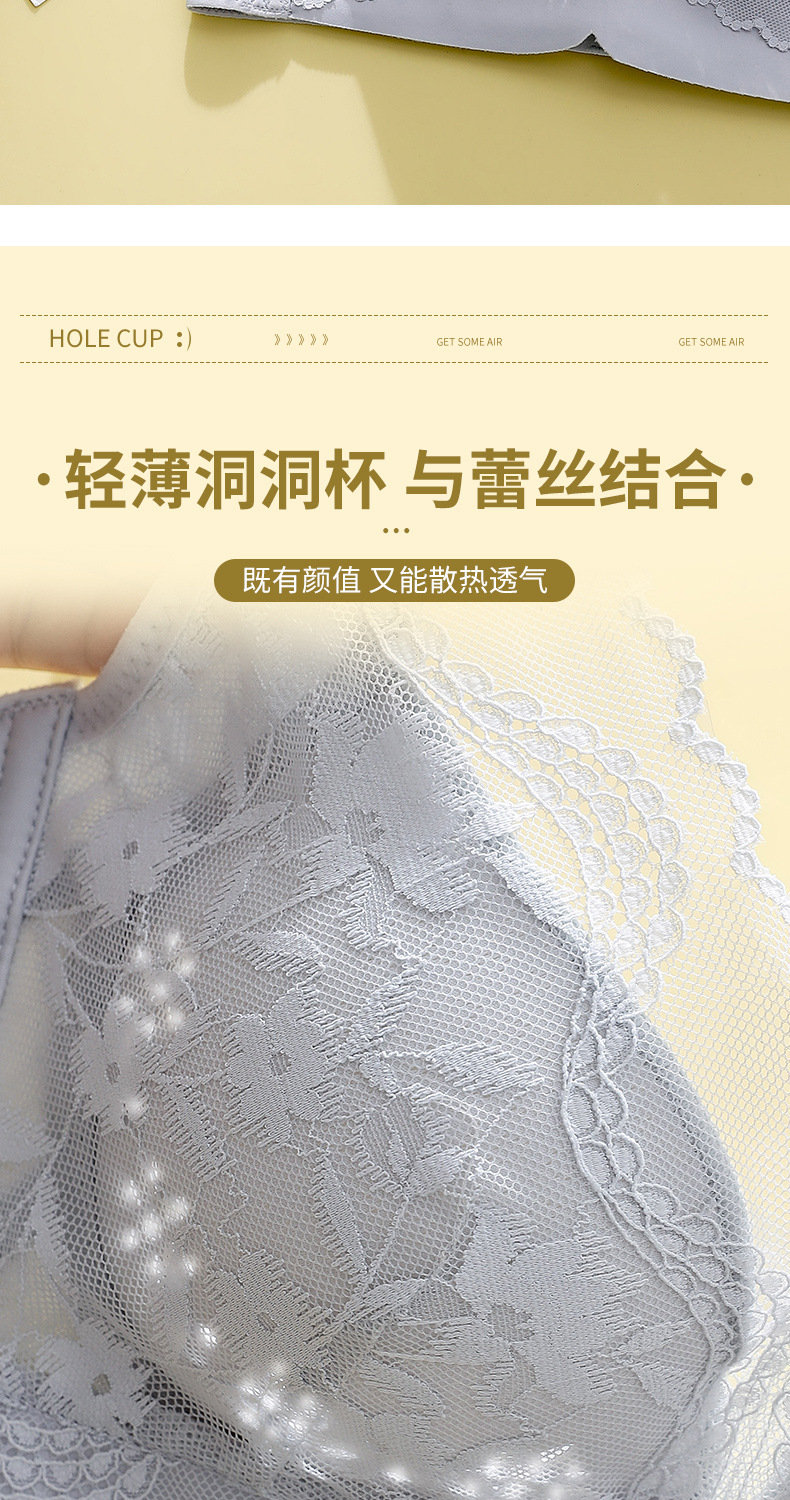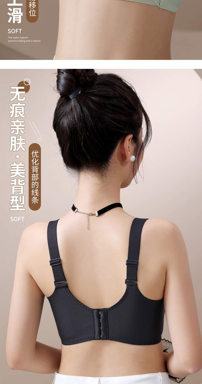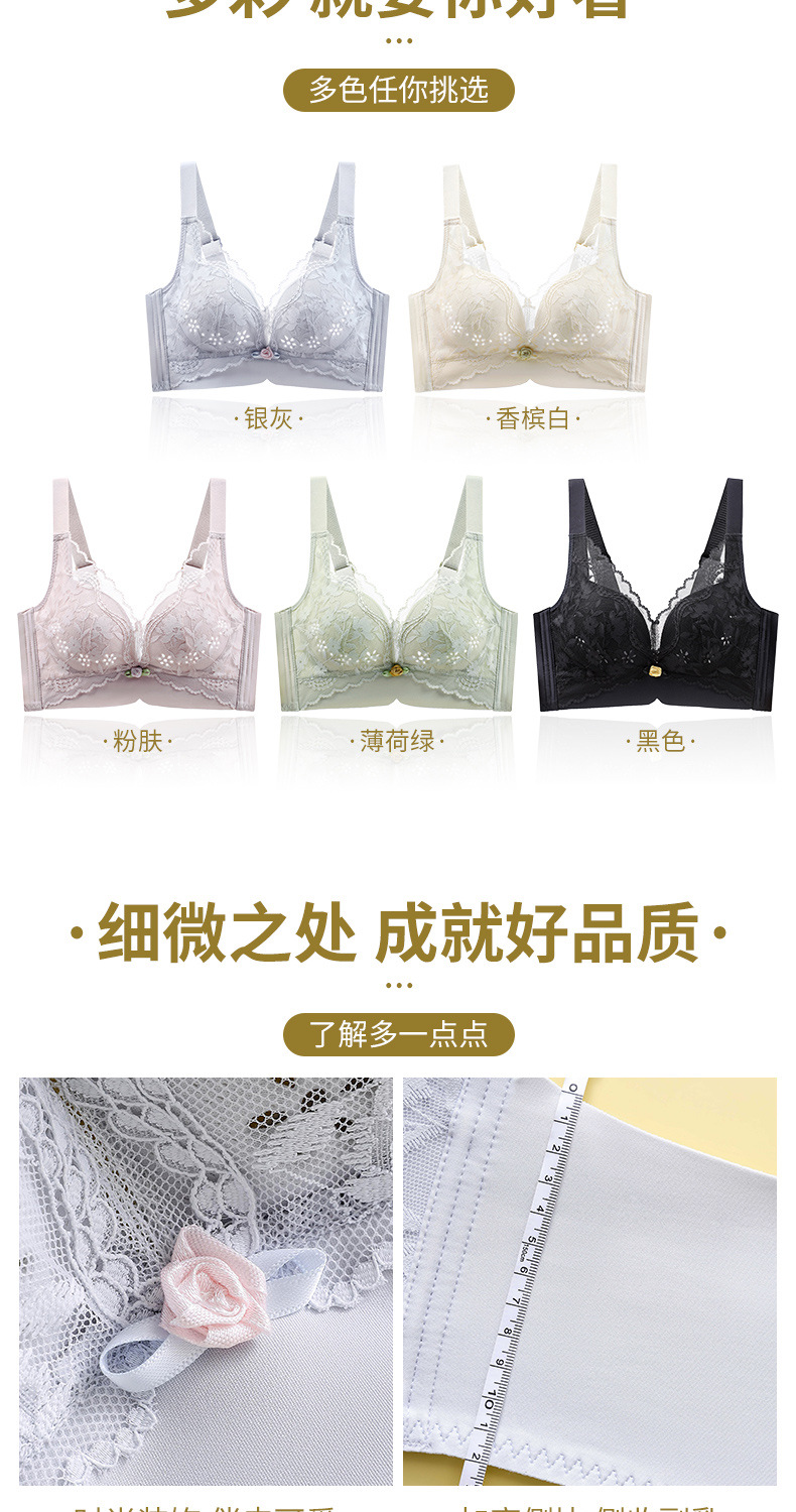 无痕内衣女夏薄款大胸显小聚拢防下垂收副乳内衣女士蕾丝文胸罩