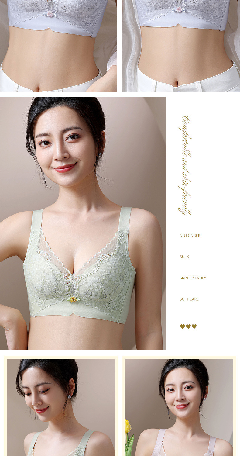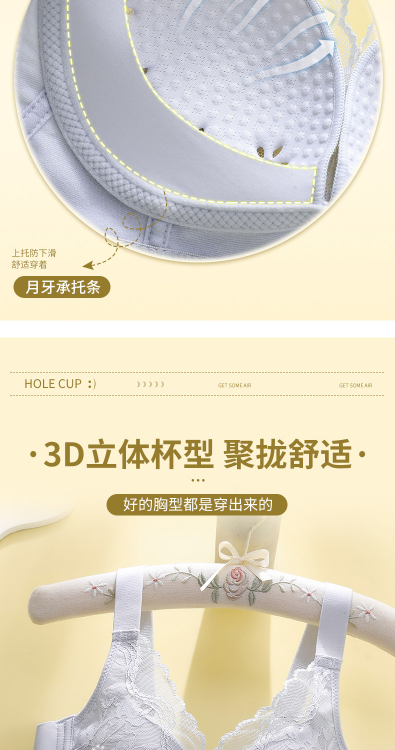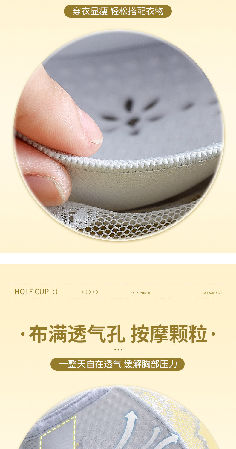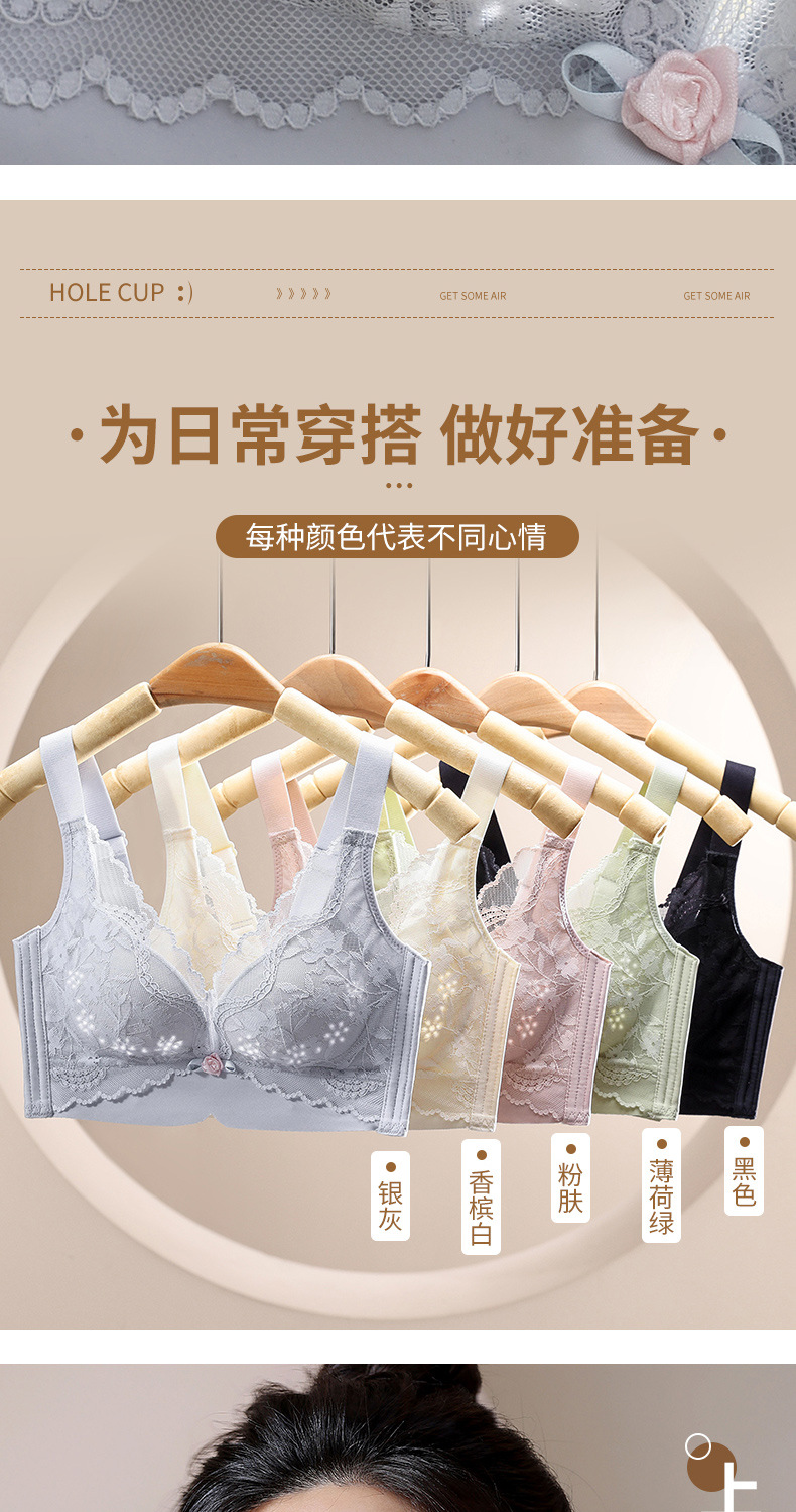无痕内衣女夏薄款大胸显小聚拢防下垂收副乳内衣女士蕾丝文胸罩