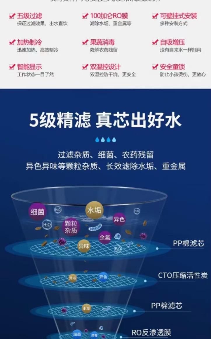 厂家语音加热一体机净水器家用ro反渗透纯水机直饮过滤冷热净水机