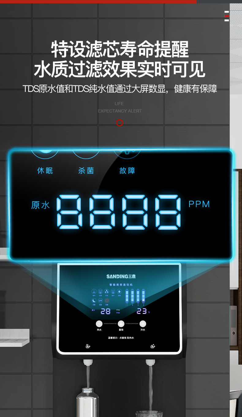 "product_name": "三鼎商用RO过滤纯水饮水机自来水直饮机加热升级立式家用净水器",