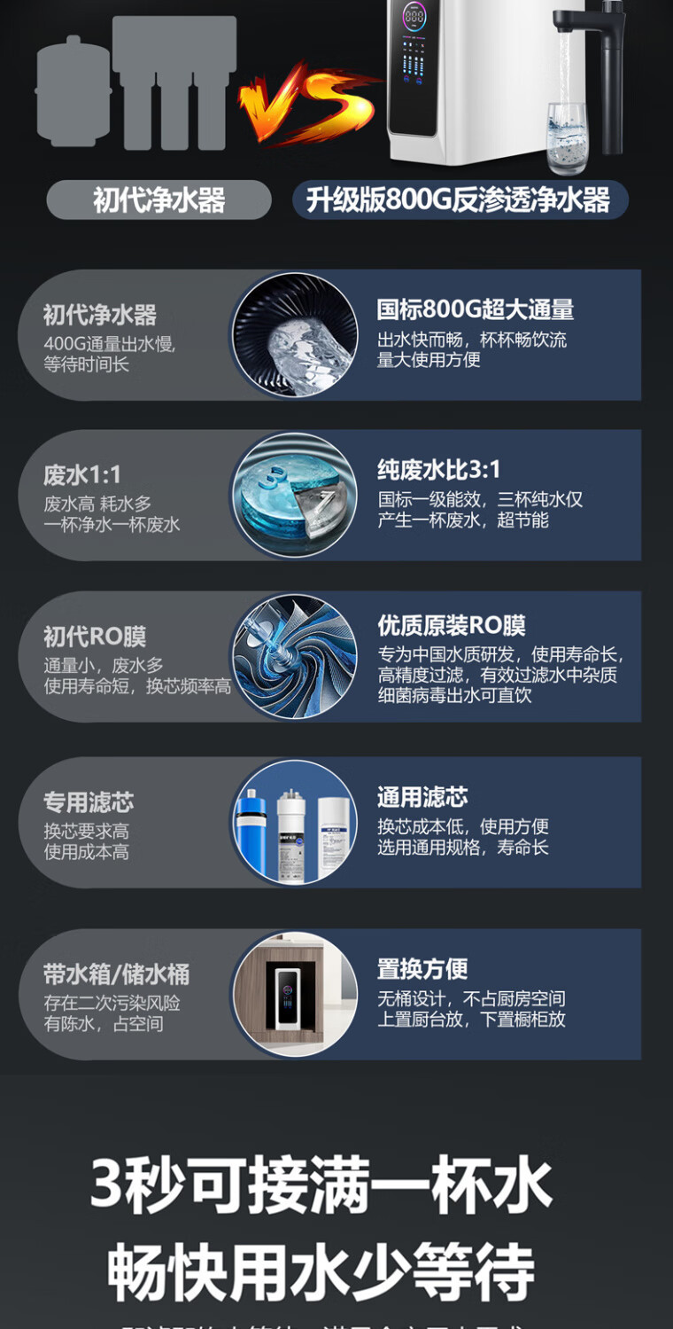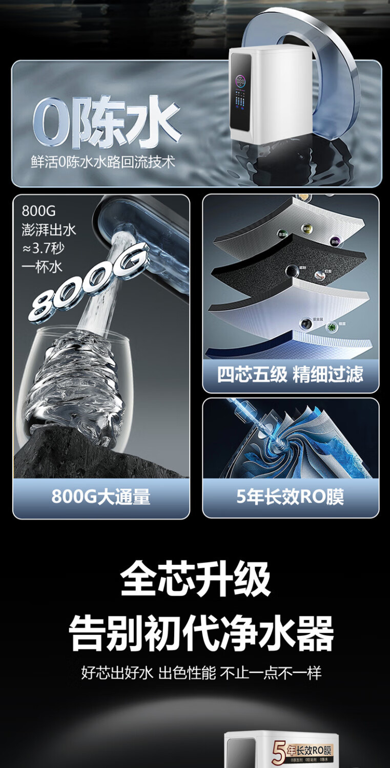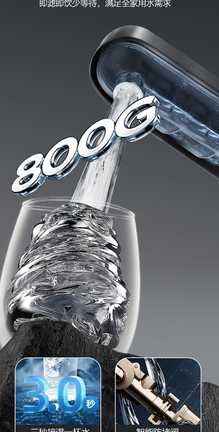 "product_name": "800G净水器家用直饮ro反渗透过滤厨下式农村井水自吸除水垢大流量",