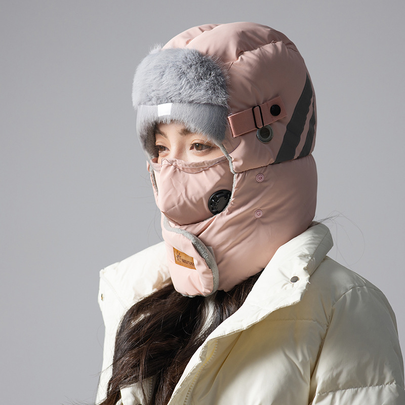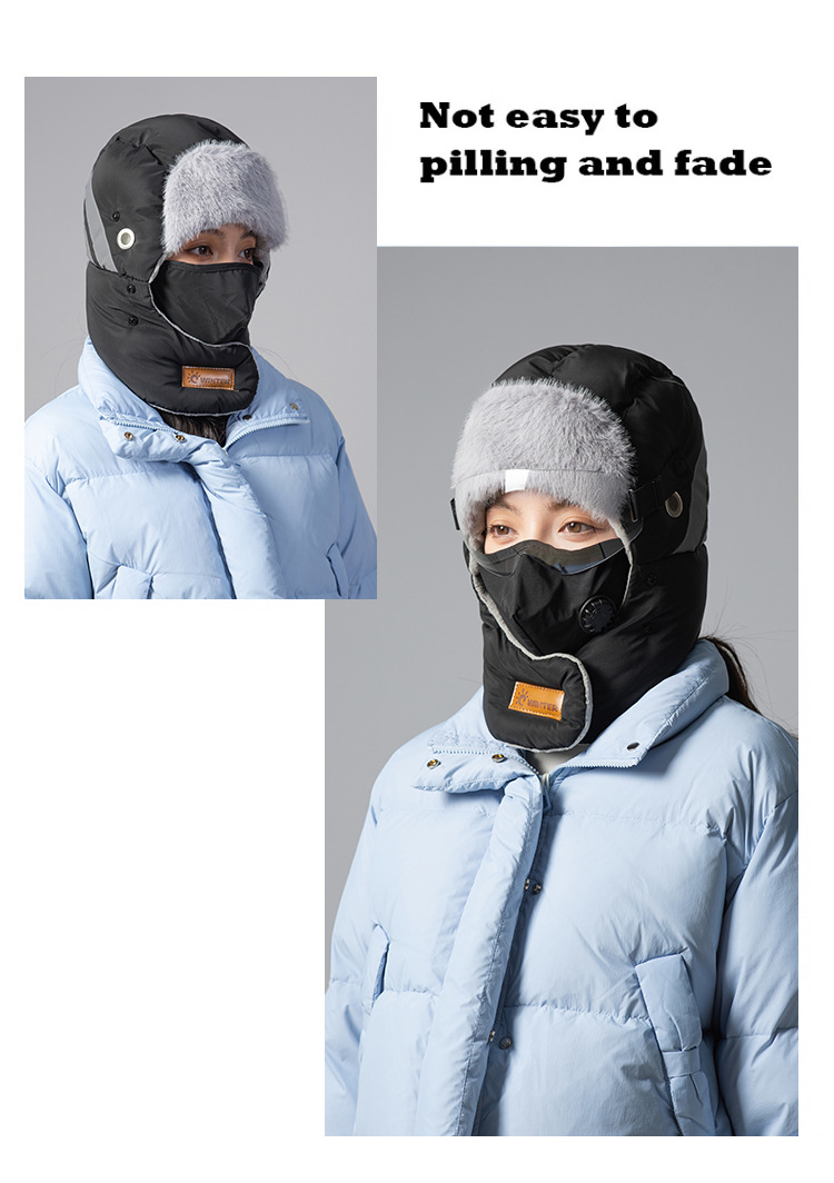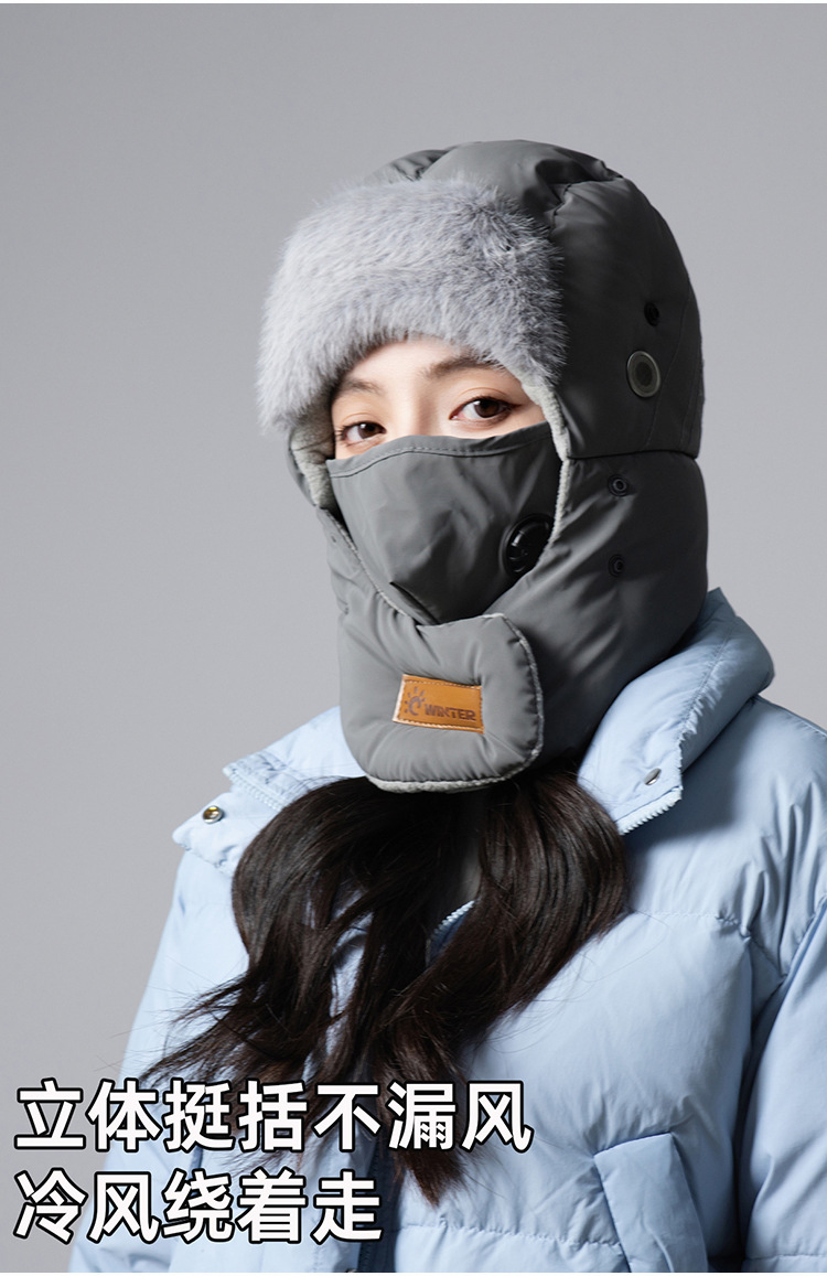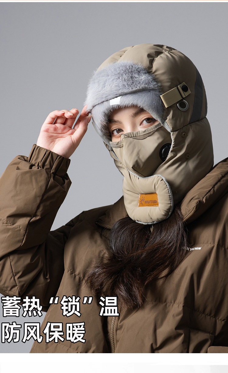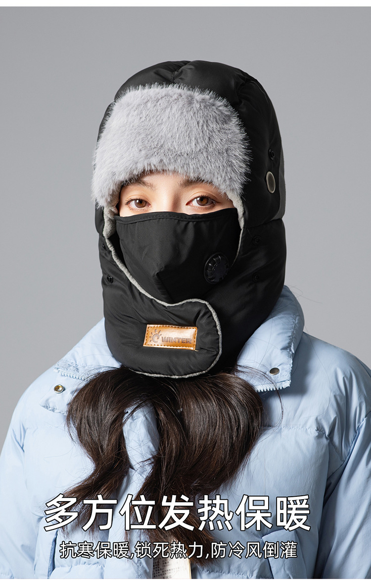 冬季保暖护耳雷锋帽男女骑行防风面罩一体加绒护颈帽子户外防寒帽