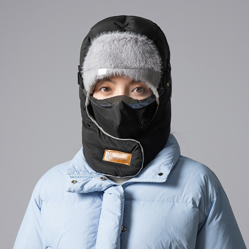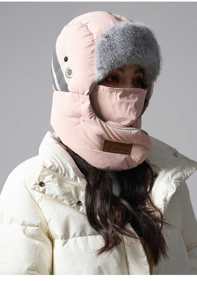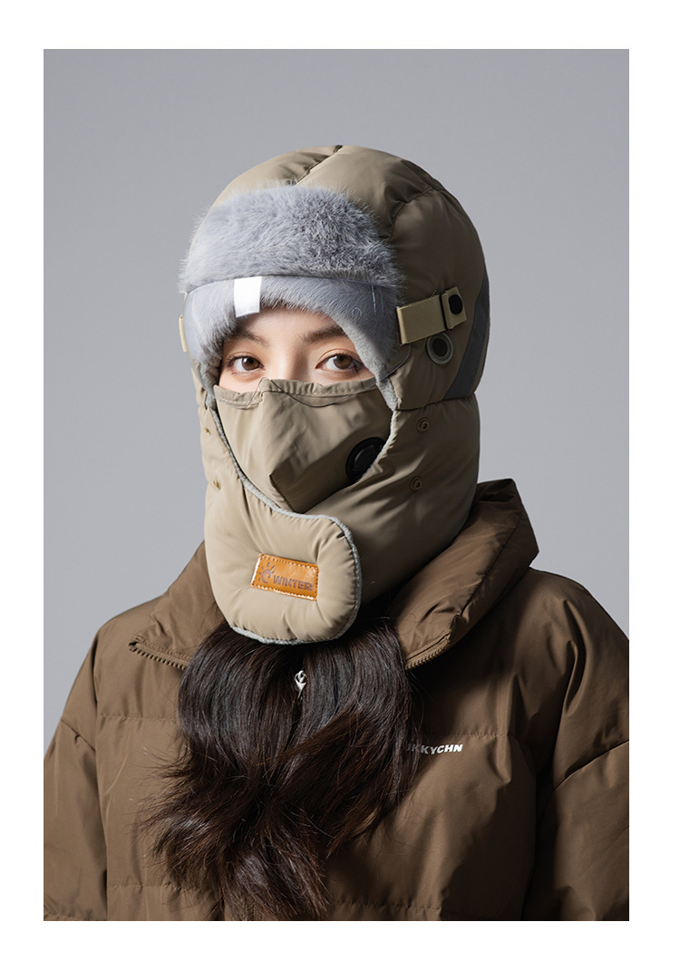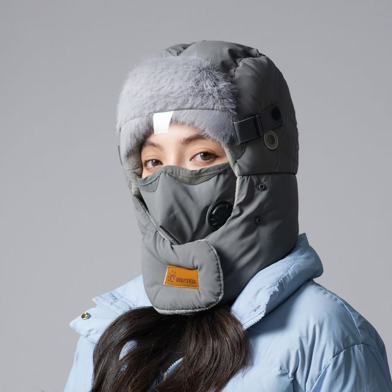 冬季保暖护耳雷锋帽男女骑行防风面罩一体加绒护颈帽子户外防寒帽
