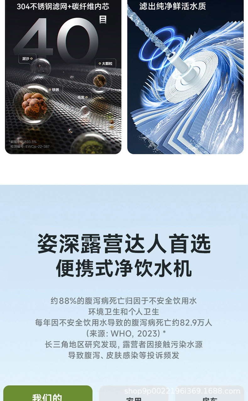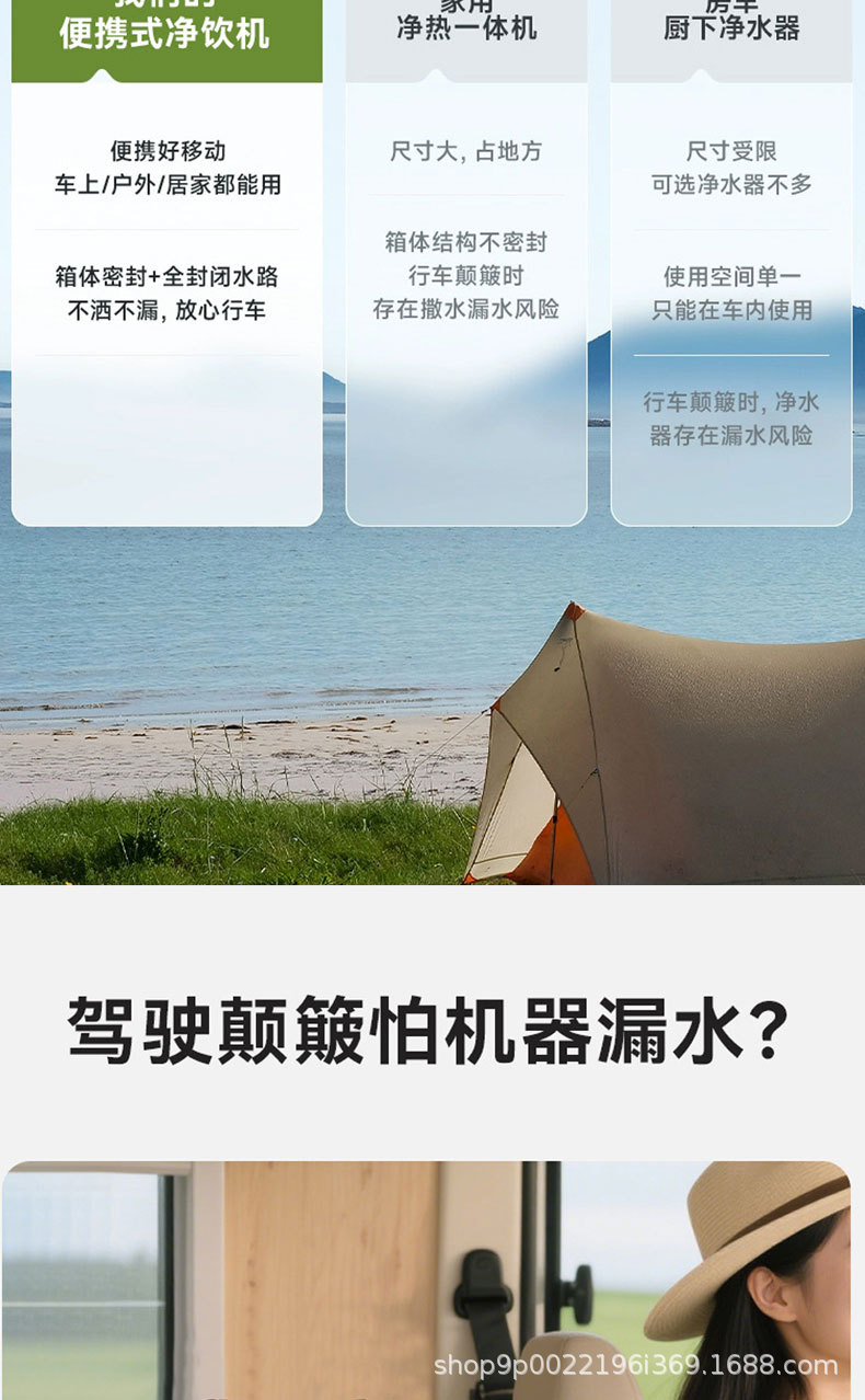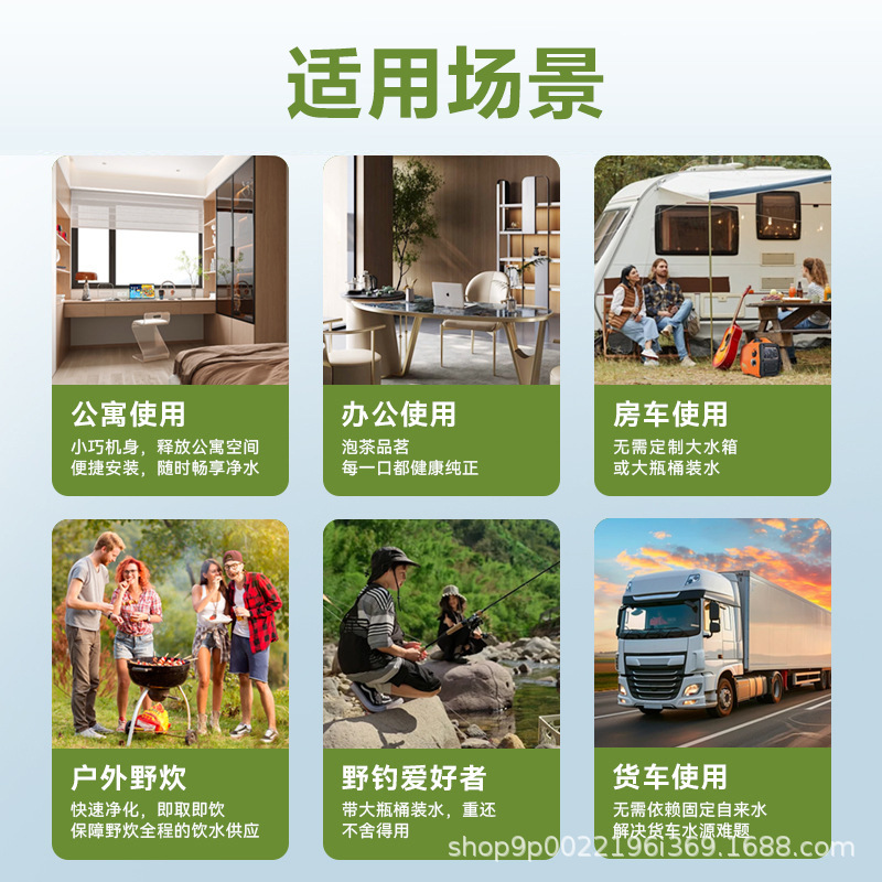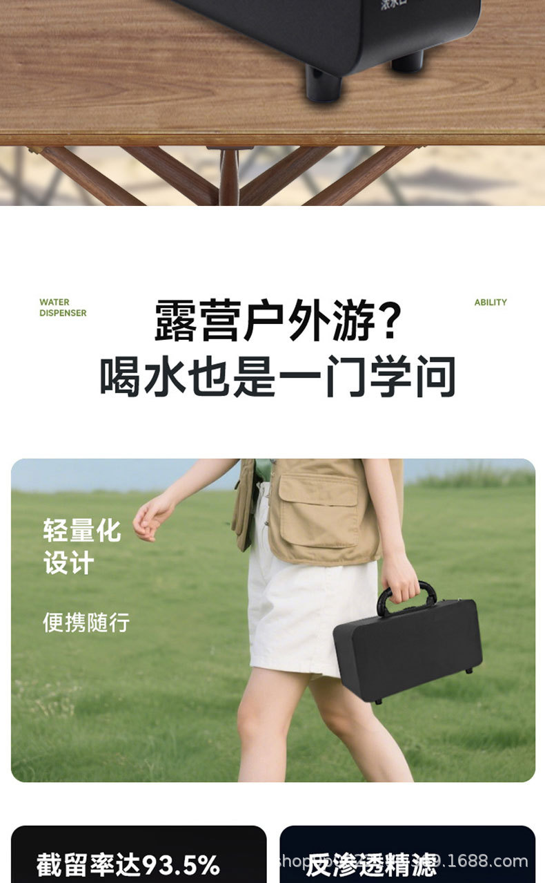 "product_name": "跨境新款便携式净水器ro反渗透纯水机户外露营车载移动直饮净水机",