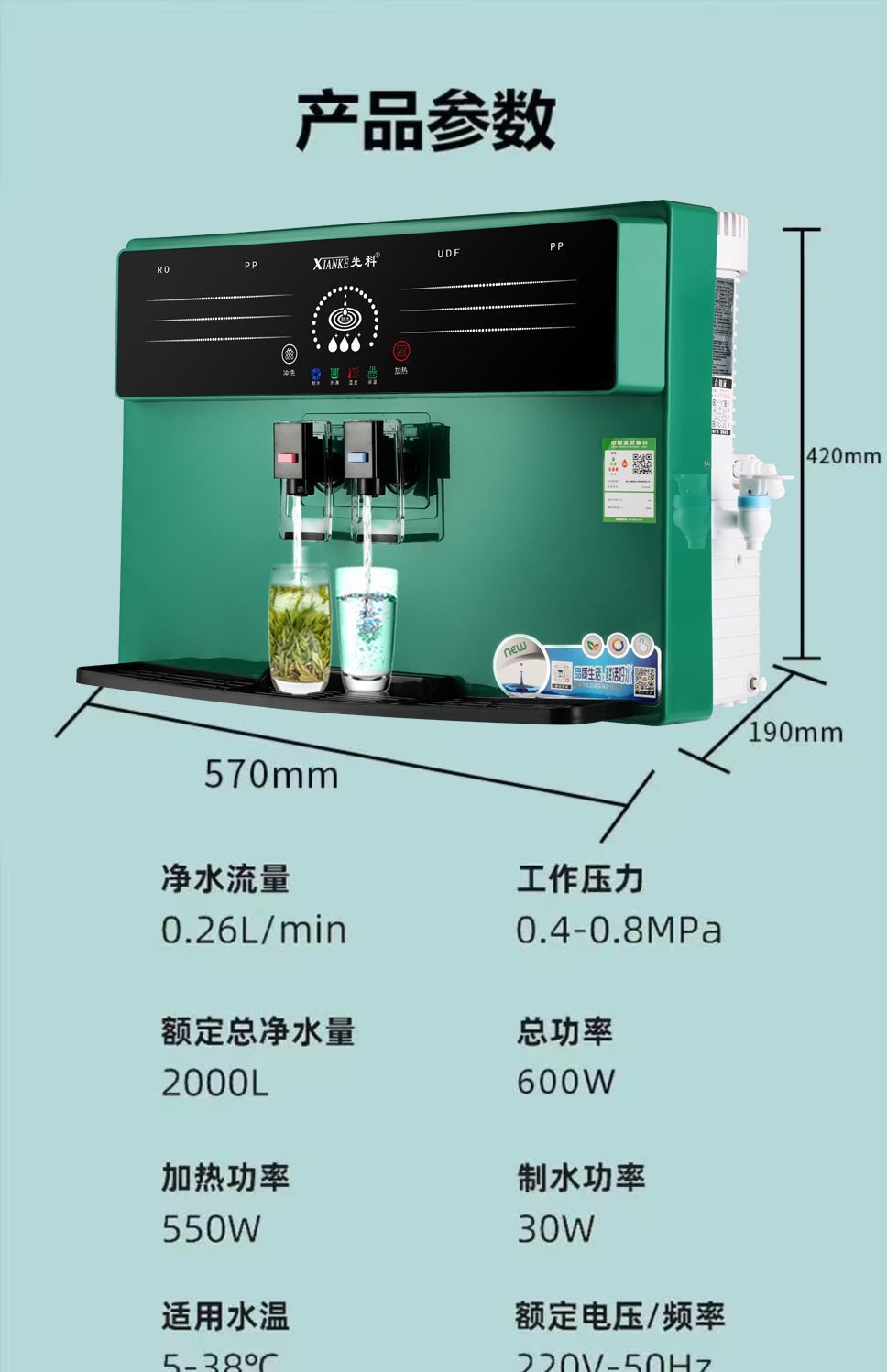 净水器五级十寸家用直饮ro反渗透加热一体机自来水台式壁挂厂家