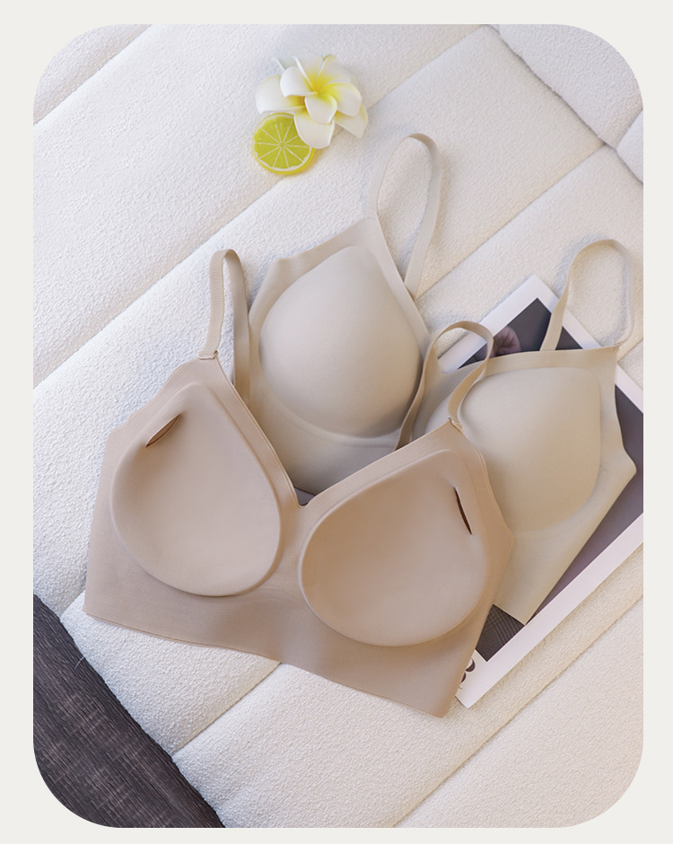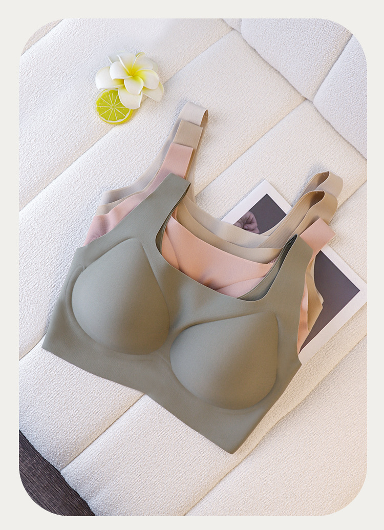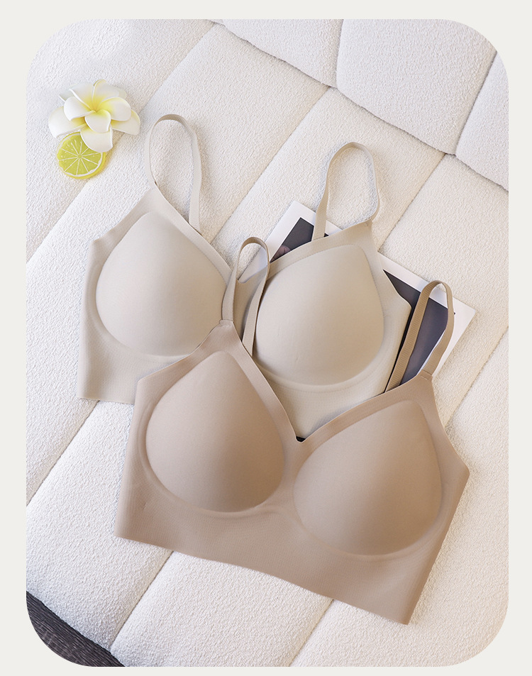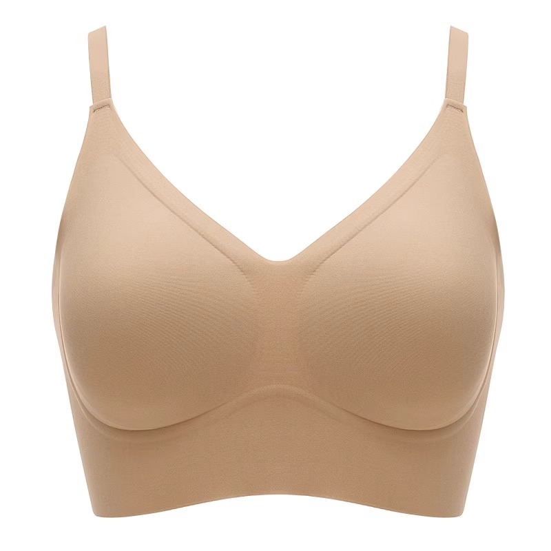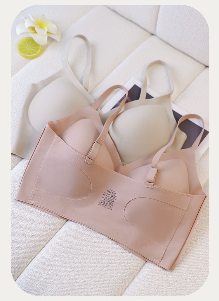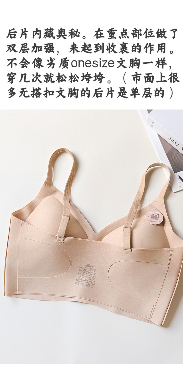 "product_name": "正版粉底液隐形肤内衣女无尺码文胸大胸显小运动背心式无钢圈胸罩",
