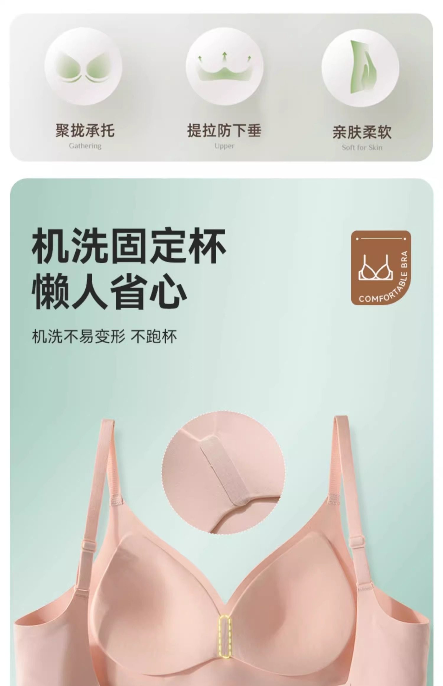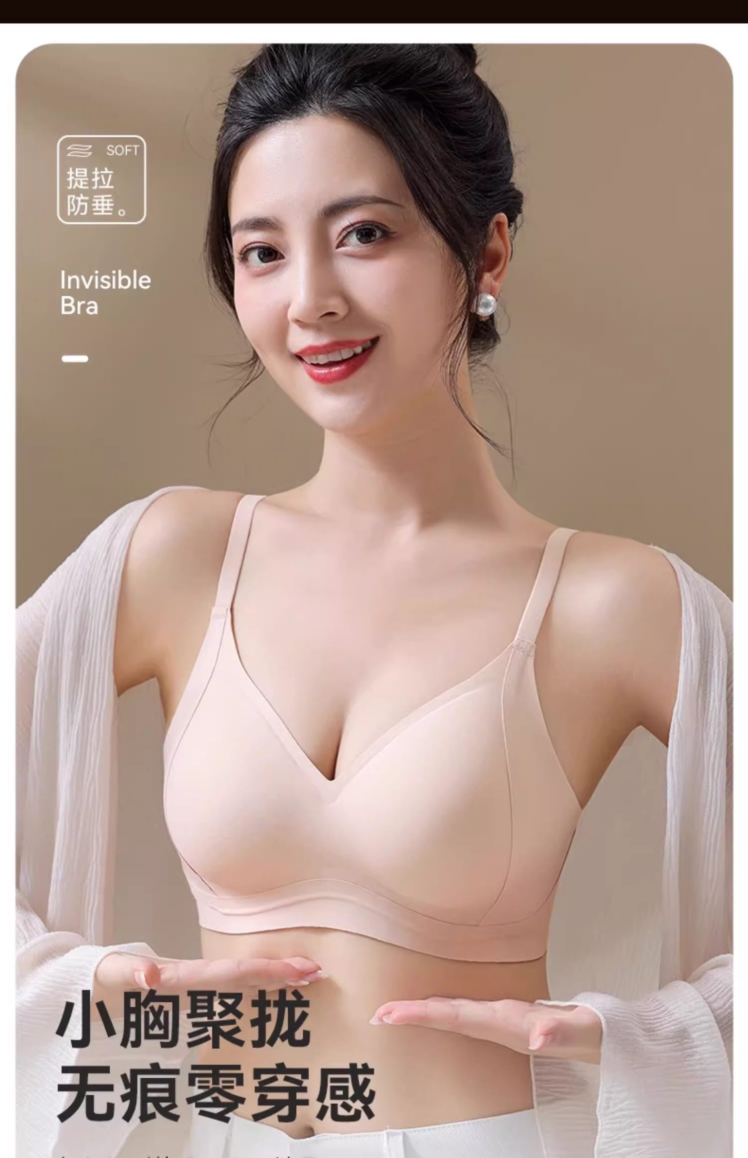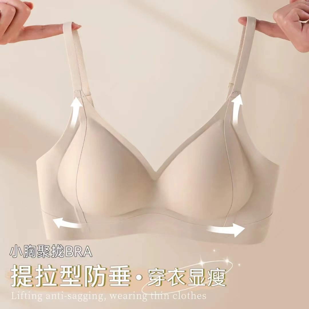 "product_name": "美胸聚拢提拉内衣女小胸显大轻薄无痕不空杯收副乳防下垂美背文胸",