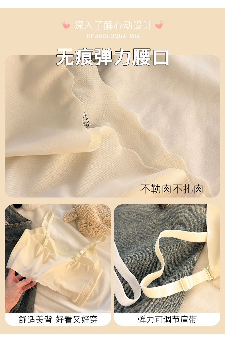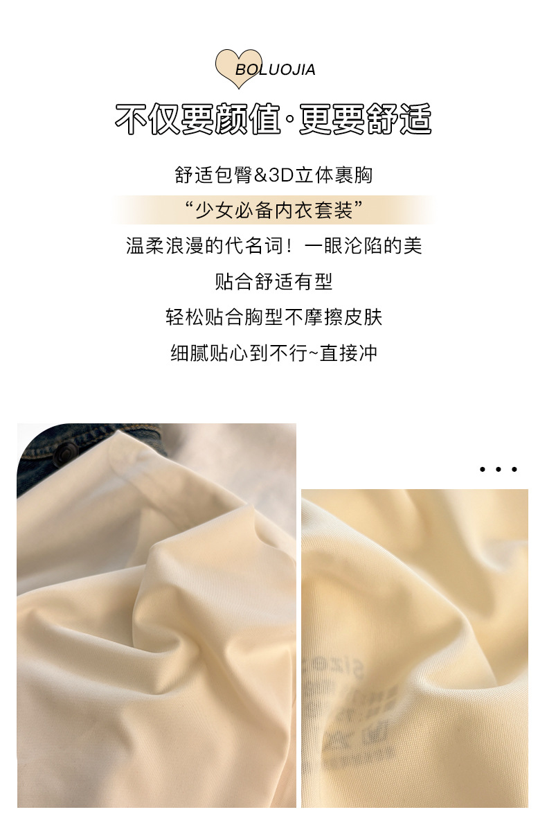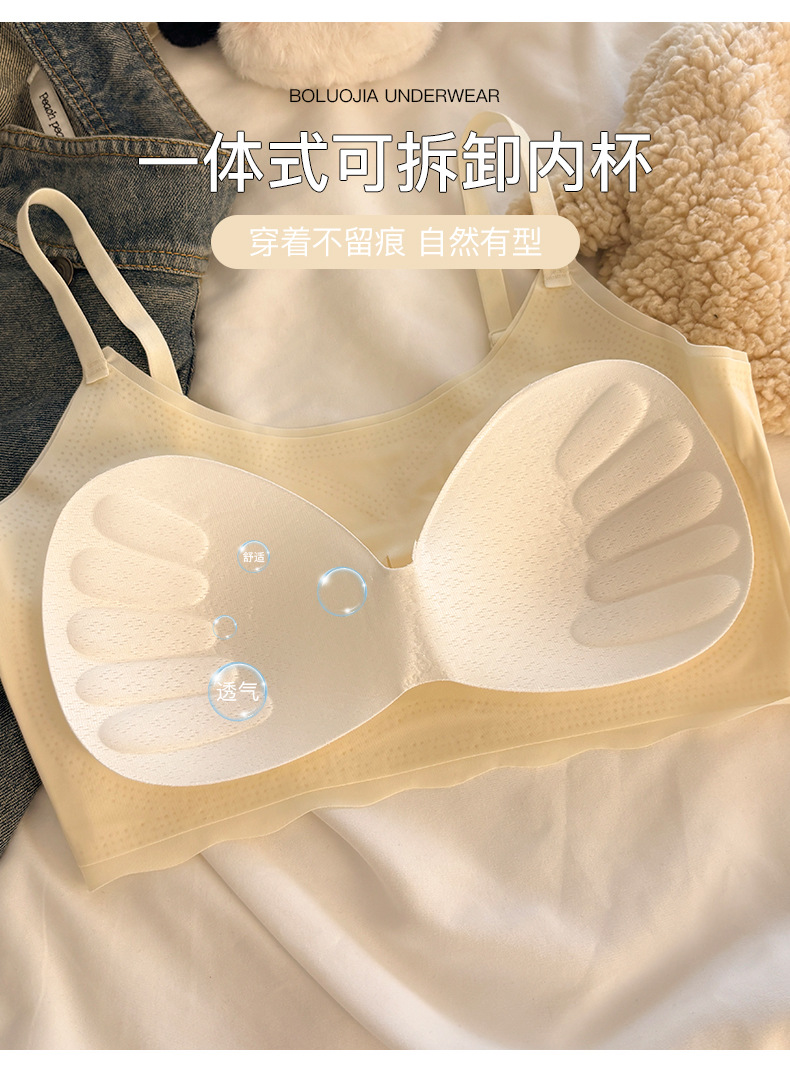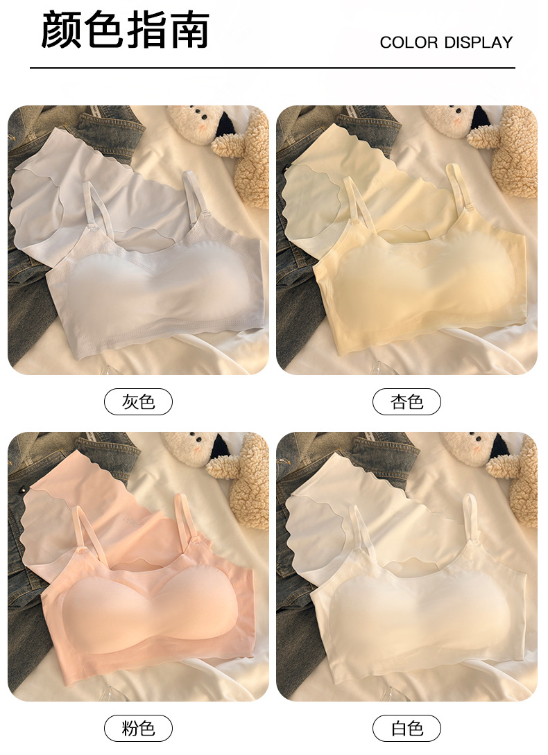 "product_name": "浅色无痕内衣内裤套装女运动聚拢无钢圈少女文胸透气显小吊带背心",
