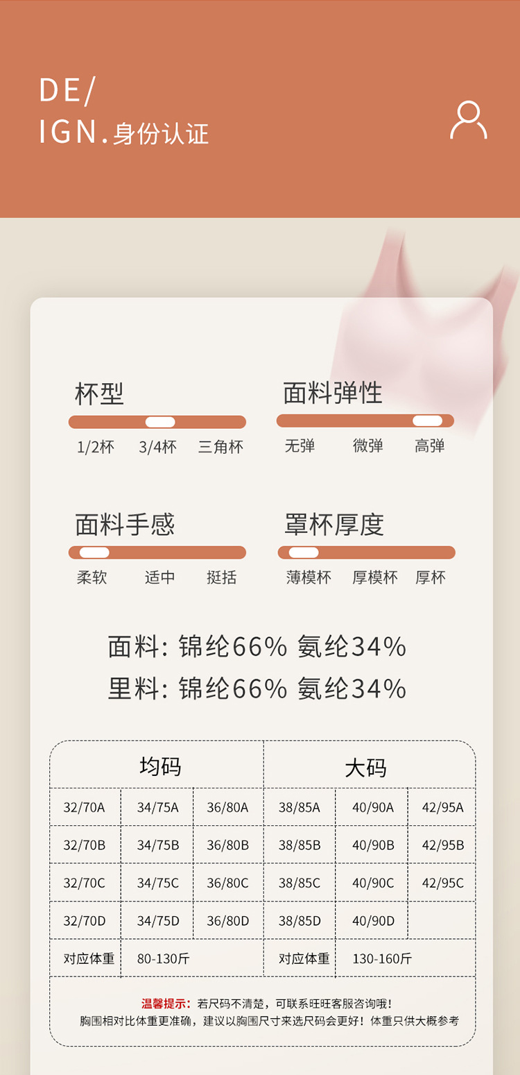 云朵无痕内衣女士尺码bra一片式文胸胸罩大胸显小固定杯大码