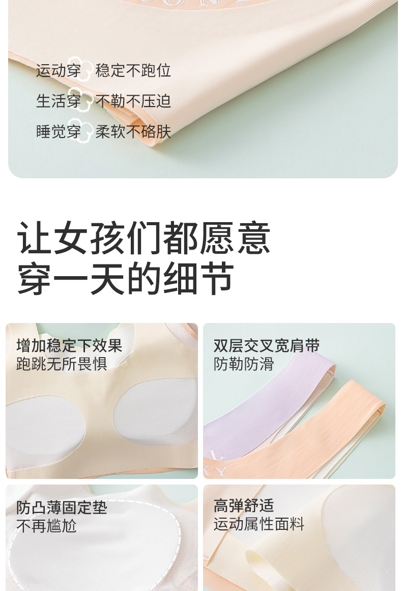 "product_name": "发育期少女内衣初高中生12-18岁学生运动文胸无痕A类抗菌女童背心",