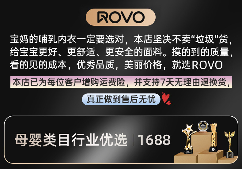 ROVO四季款哺乳内衣女孕妇聚拢防下垂大胸显小无痕固定杯批发文胸