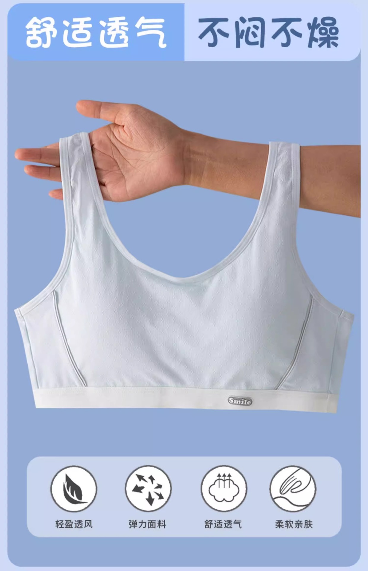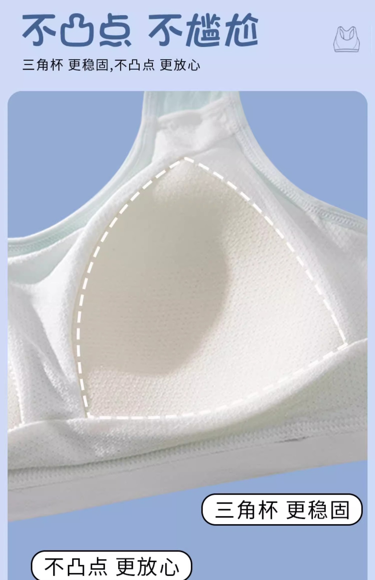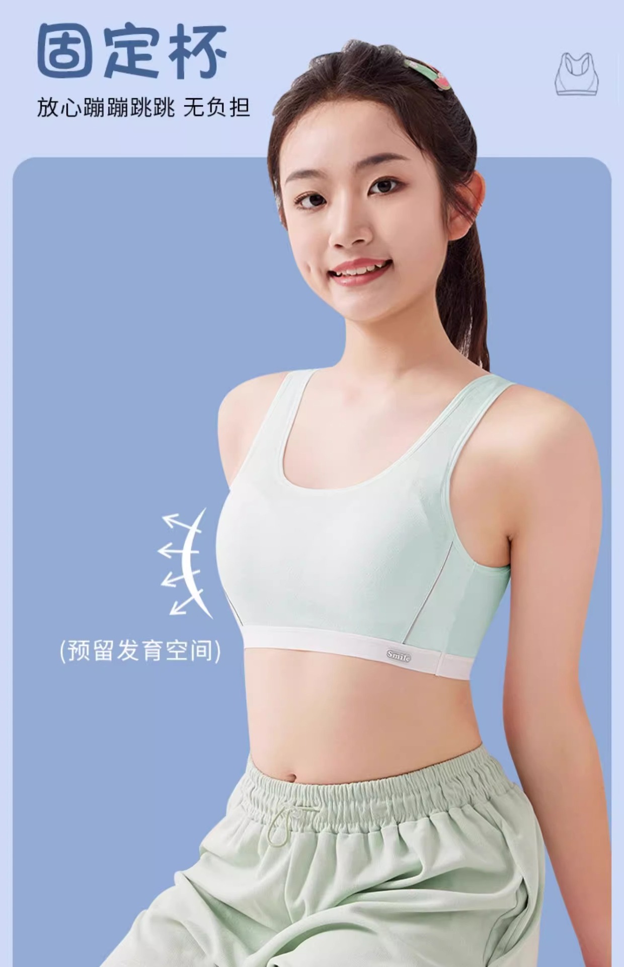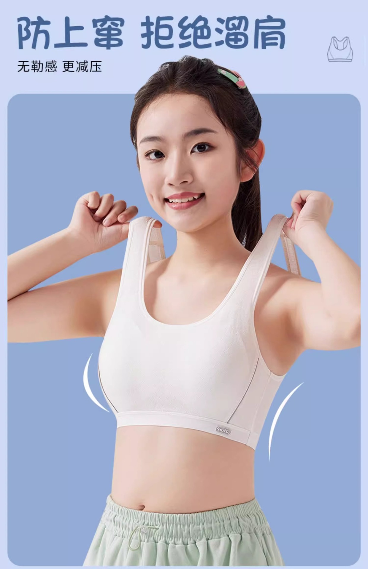 "product_name": "高中生运动内衣青春发育期背心防震跑步初中学生透气大童少女文胸",