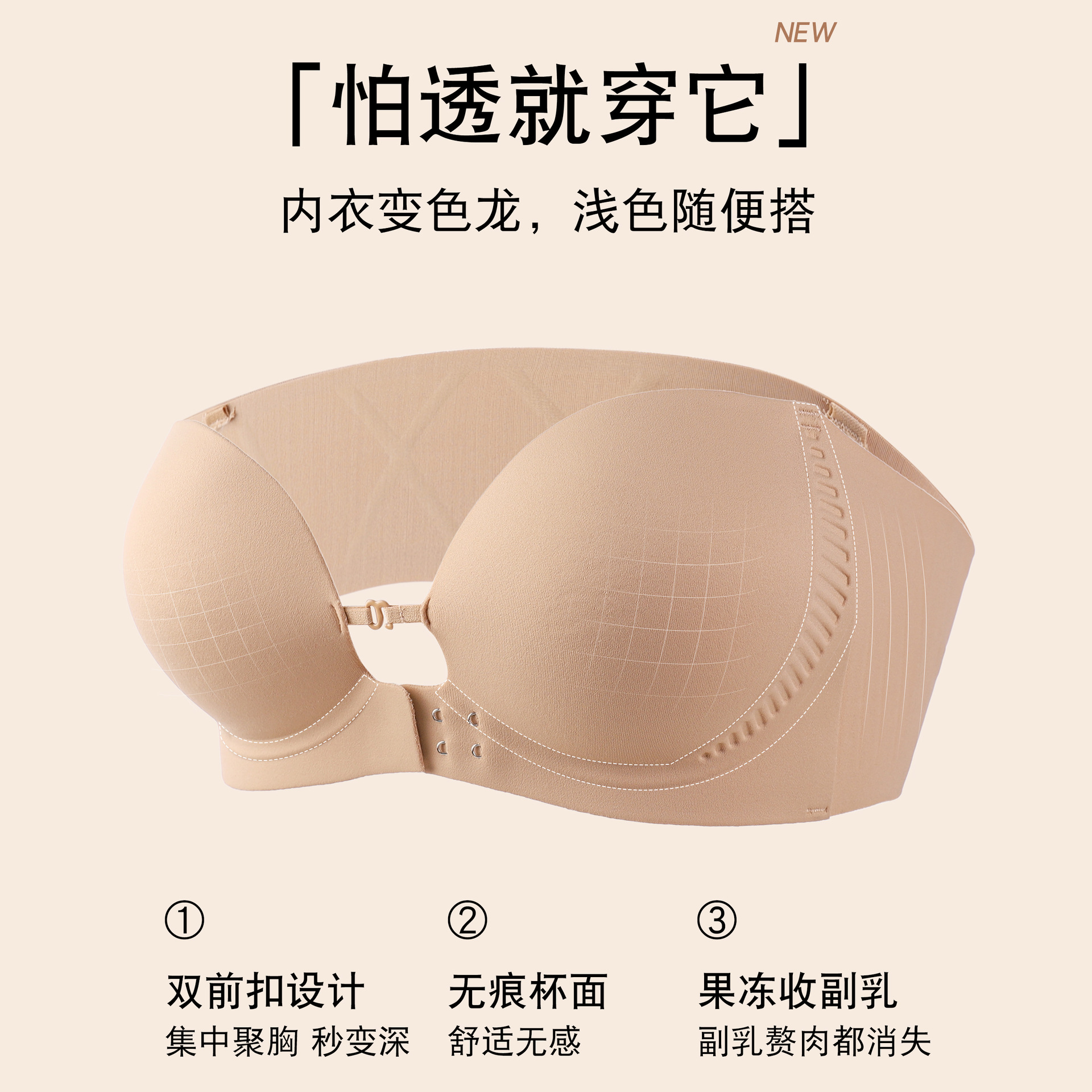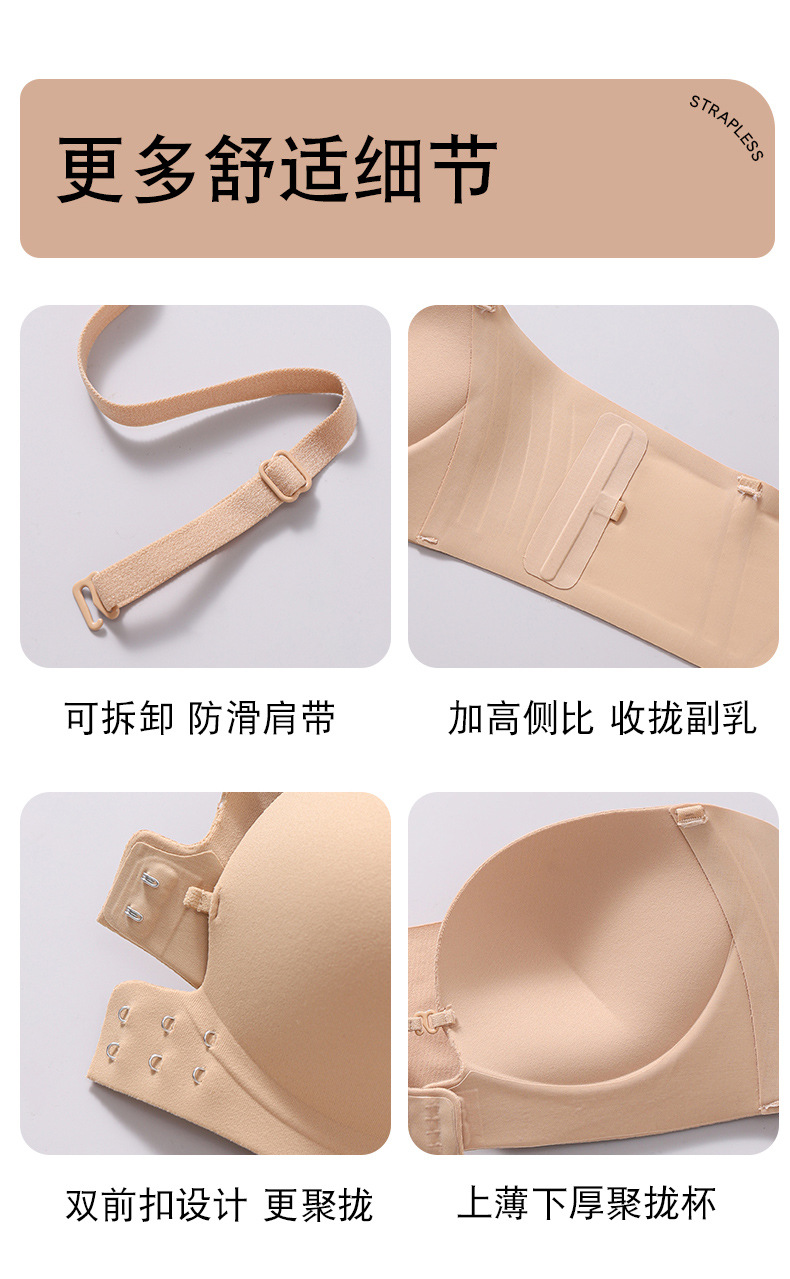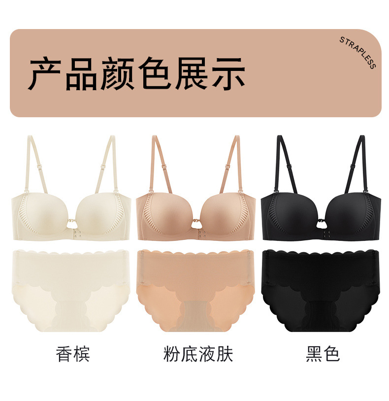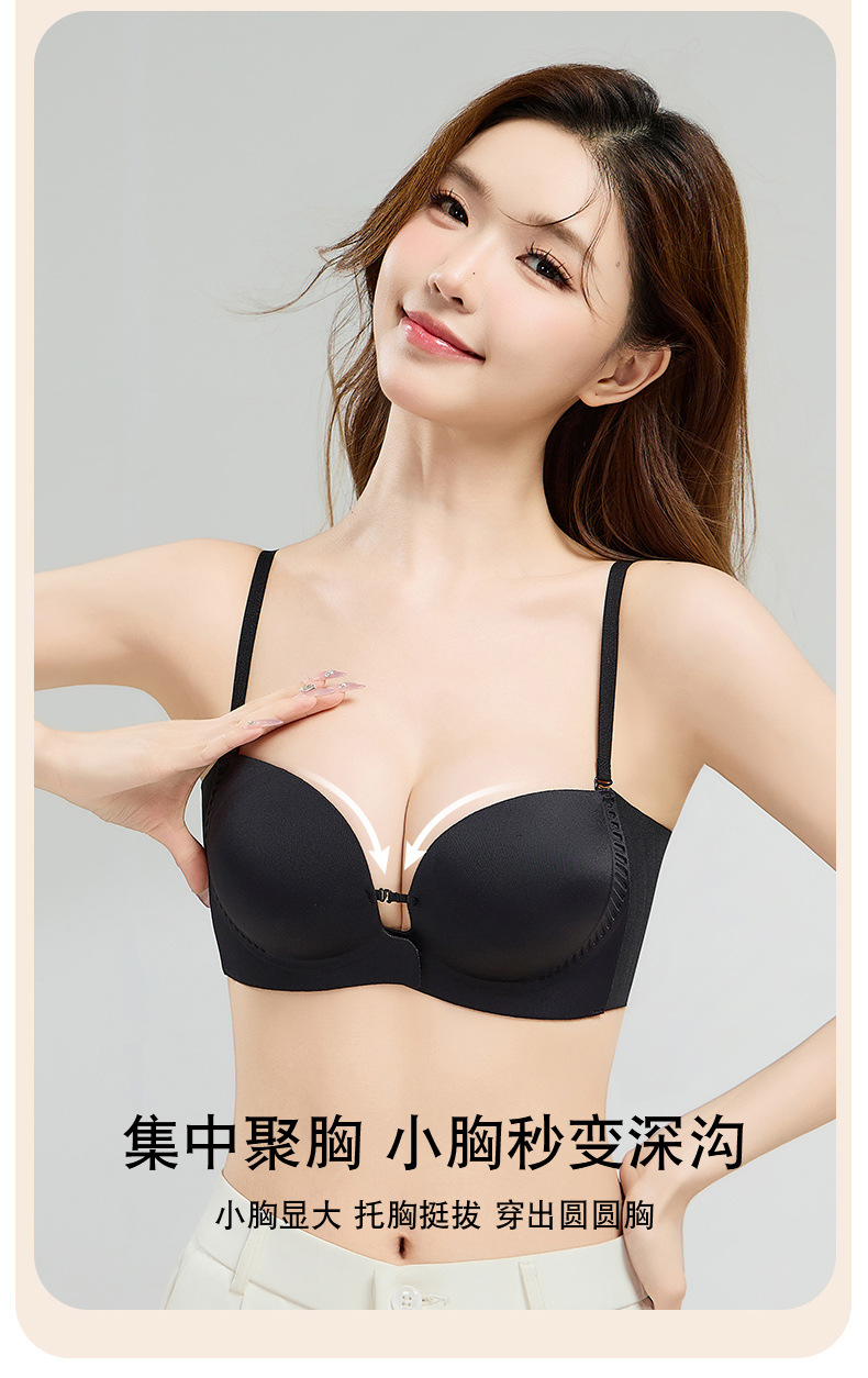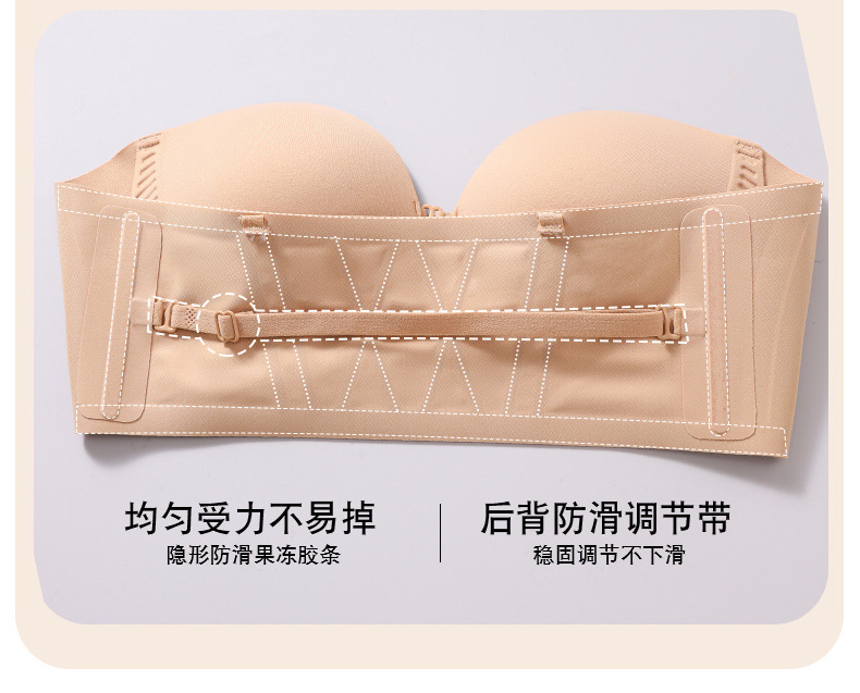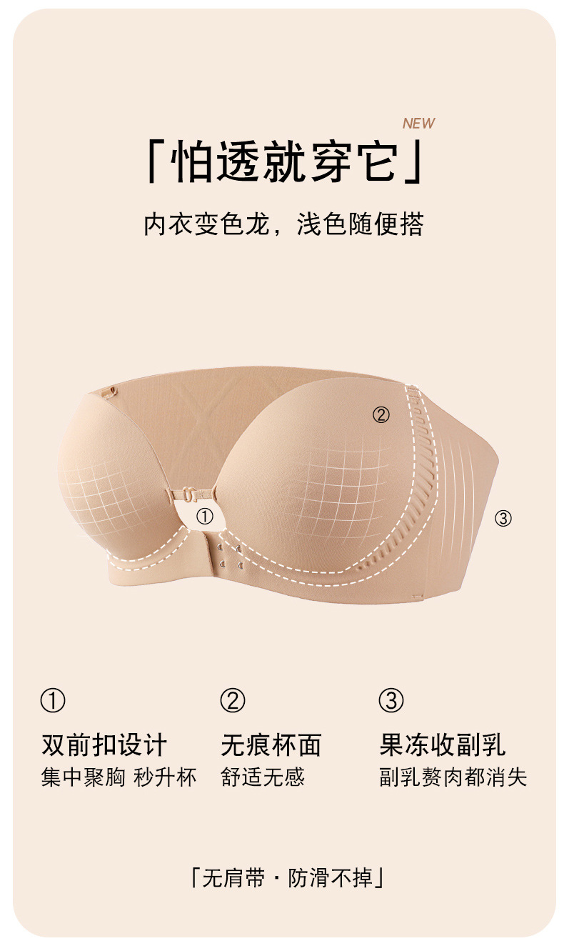 "product_name": "夏季粉底液前扣抹胸内衣女小胸聚拢上托无痕防滑无肩带美背文胸罩",