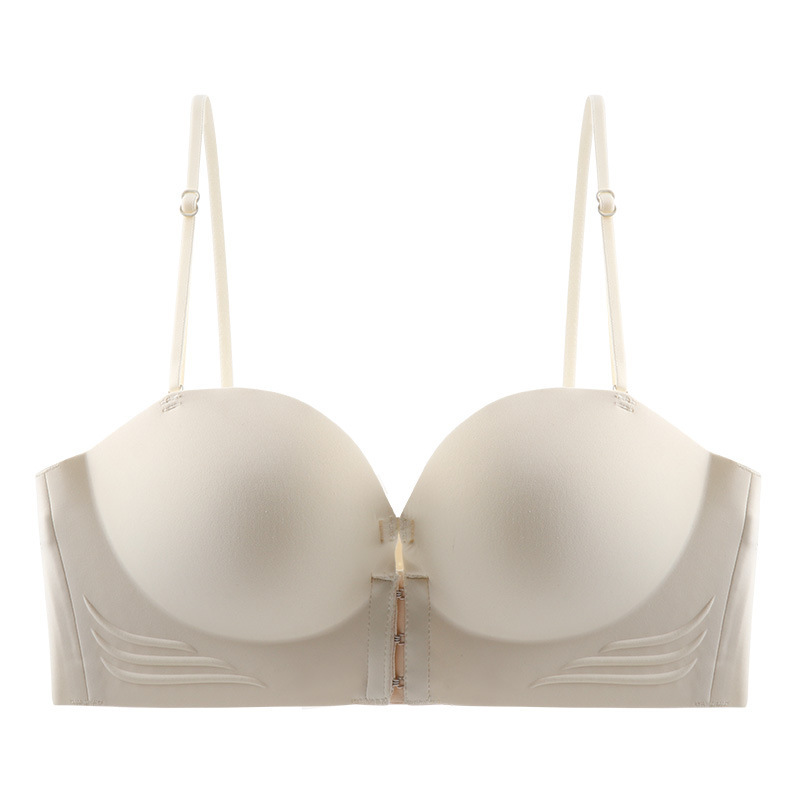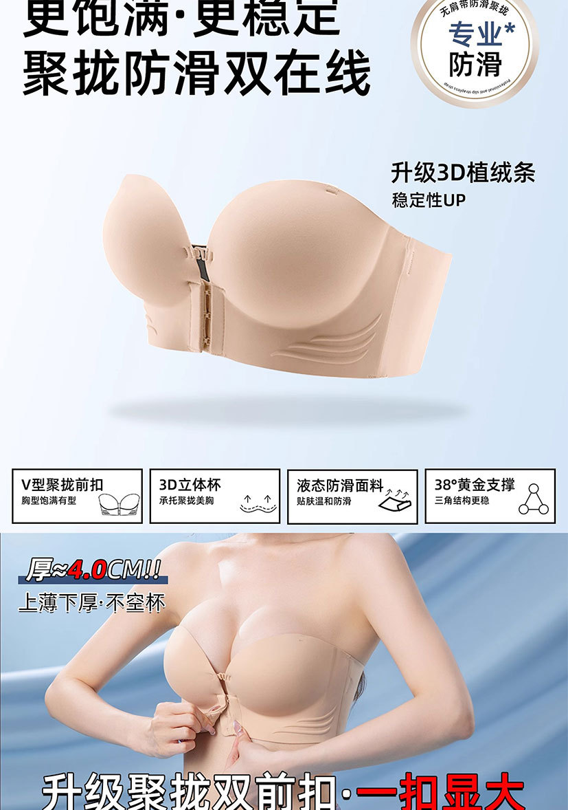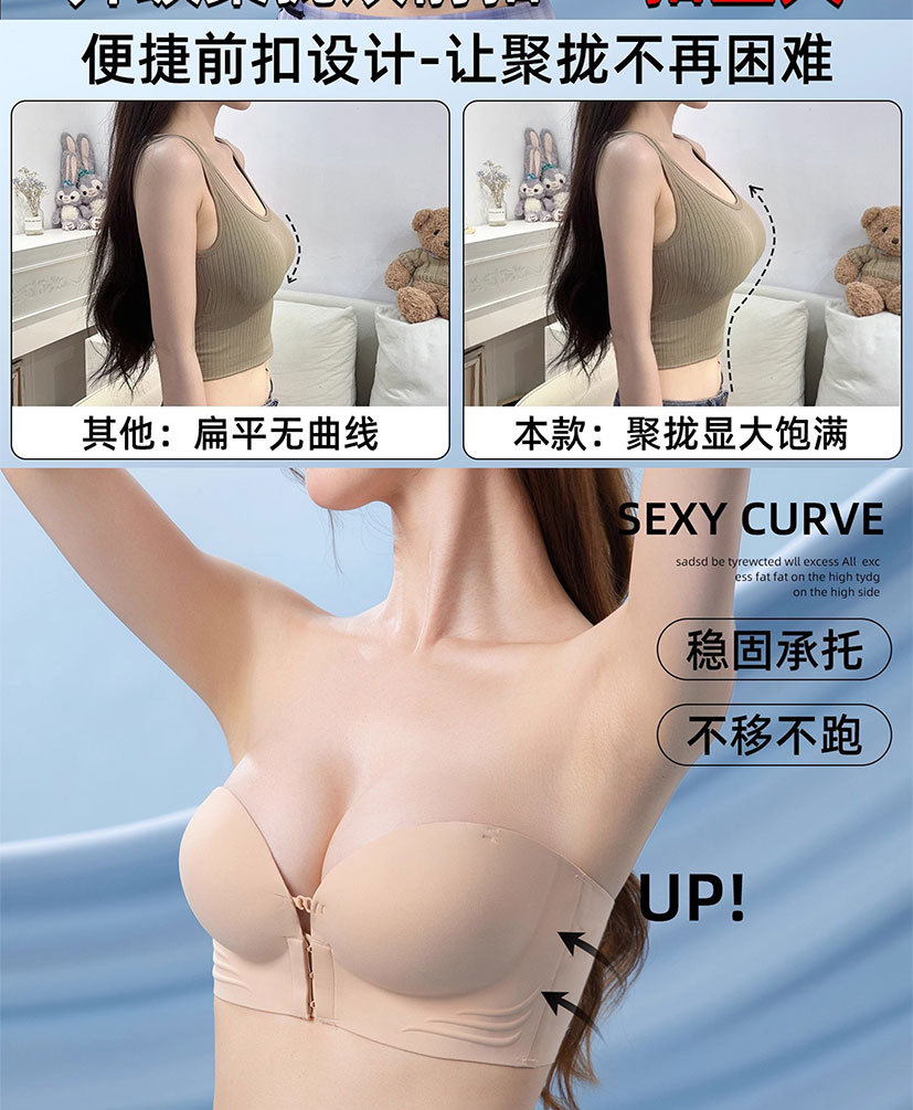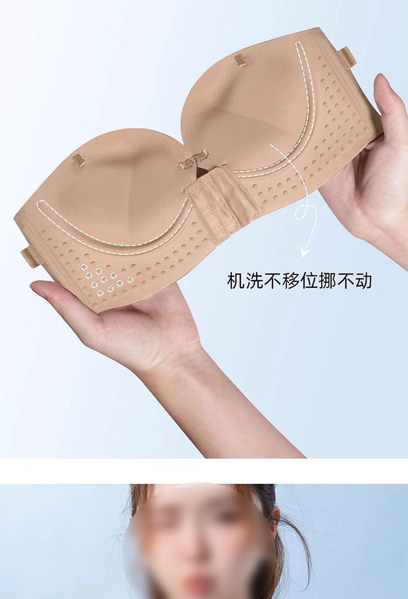 "product_name": "夏季无肩带内衣蹦迪不掉大胸婚纱抹胸内衣女小胸聚拢防滑加厚裹胸",