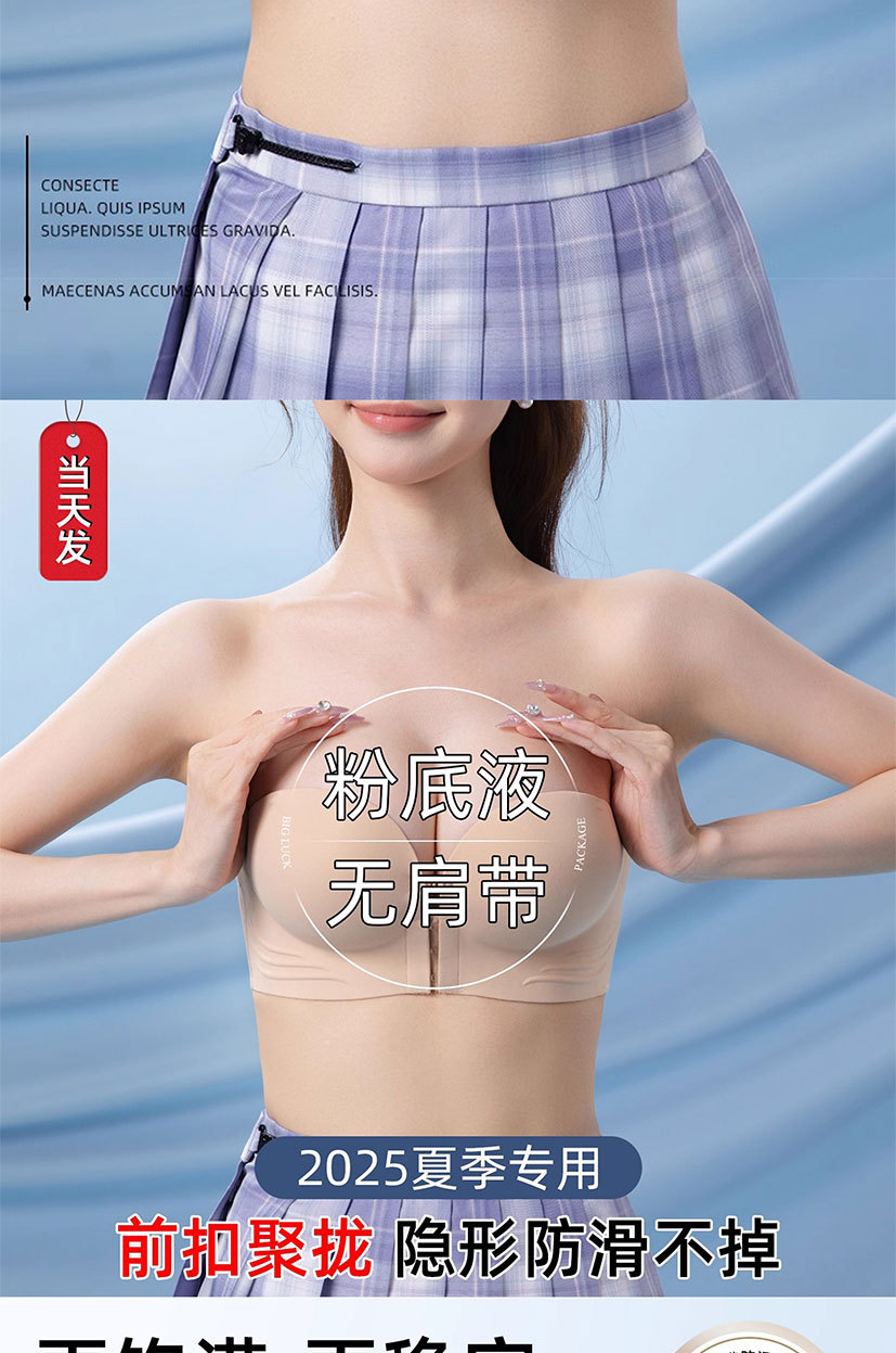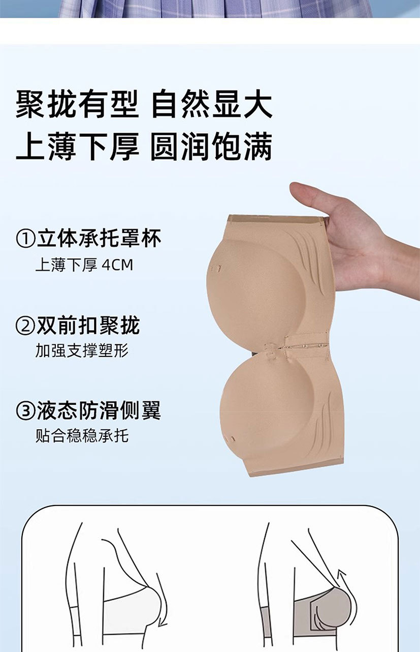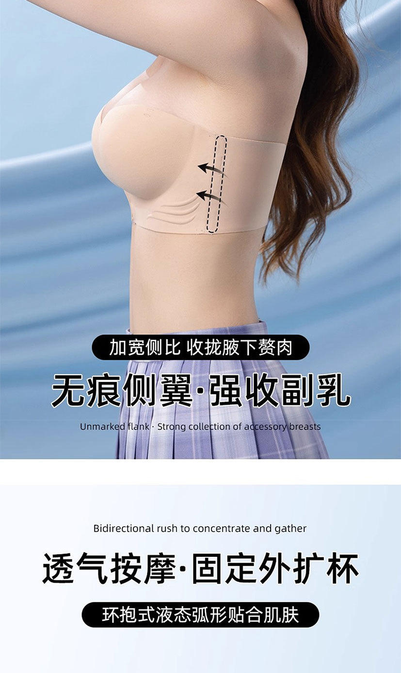 "product_name": "夏季无肩带内衣蹦迪不掉大胸婚纱抹胸内衣女小胸聚拢防滑加厚裹胸",