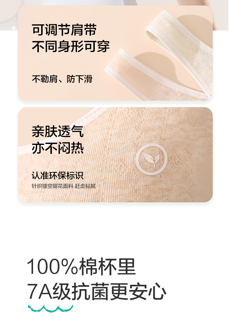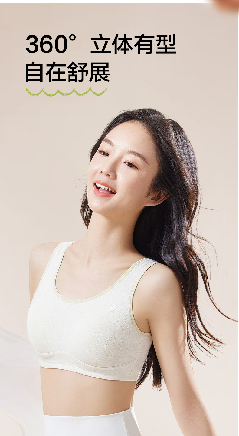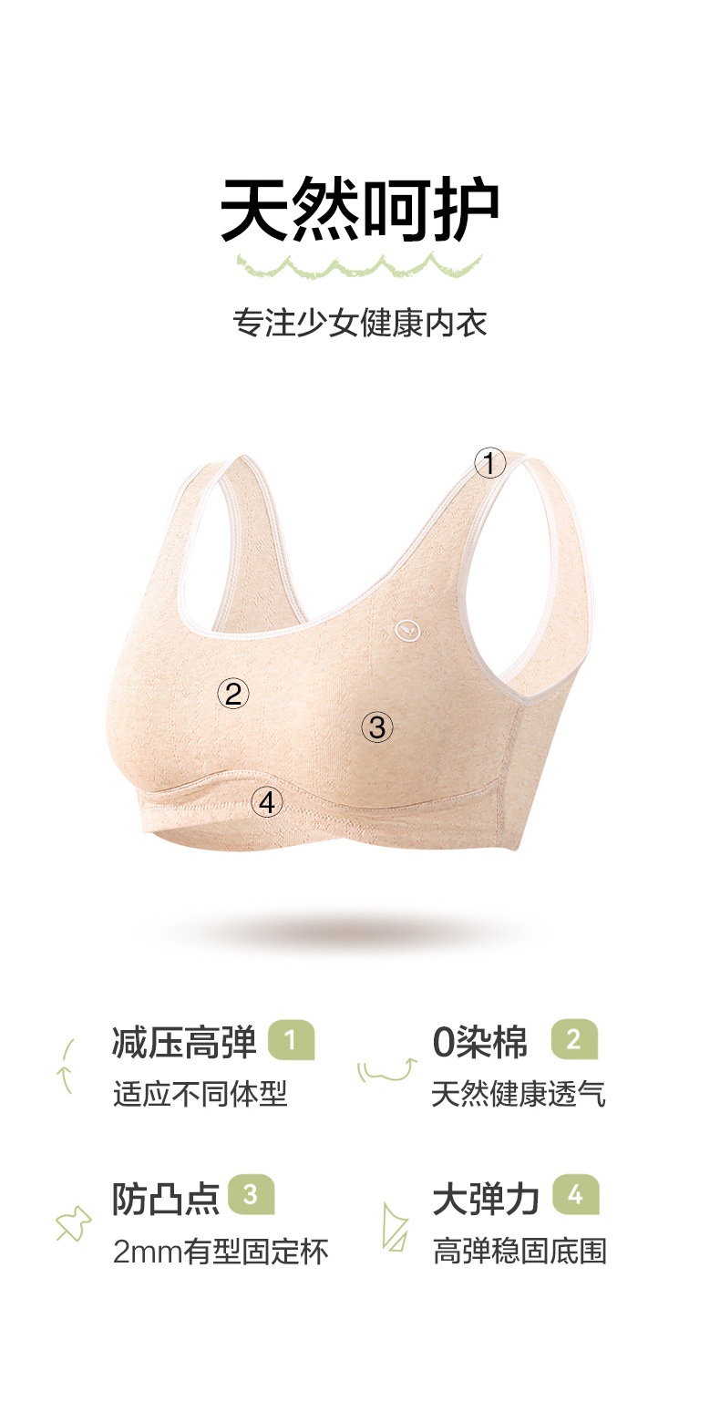安菲雅纯棉彩棉中学生少女内衣发育期固定杯文胸大童学生舒适胸罩