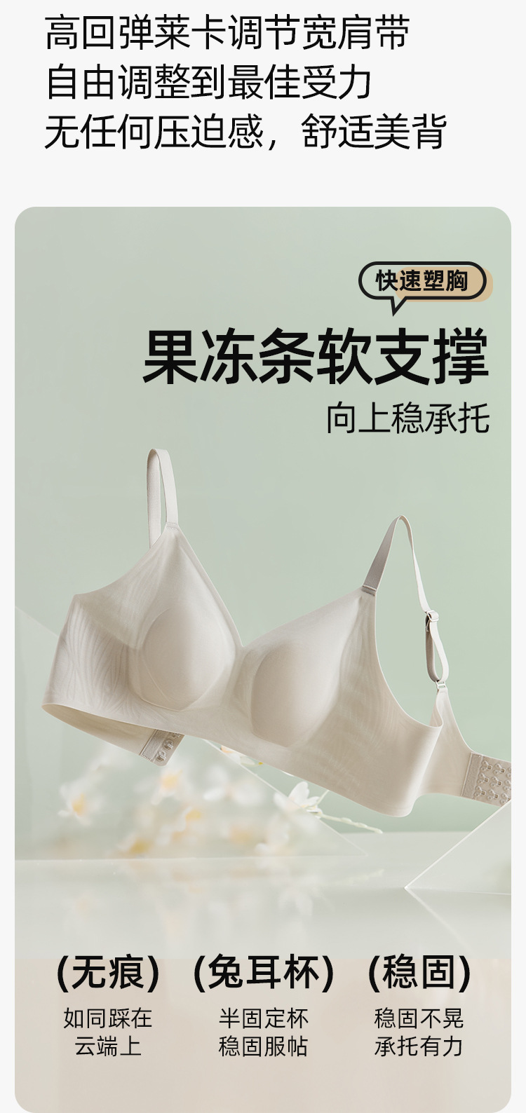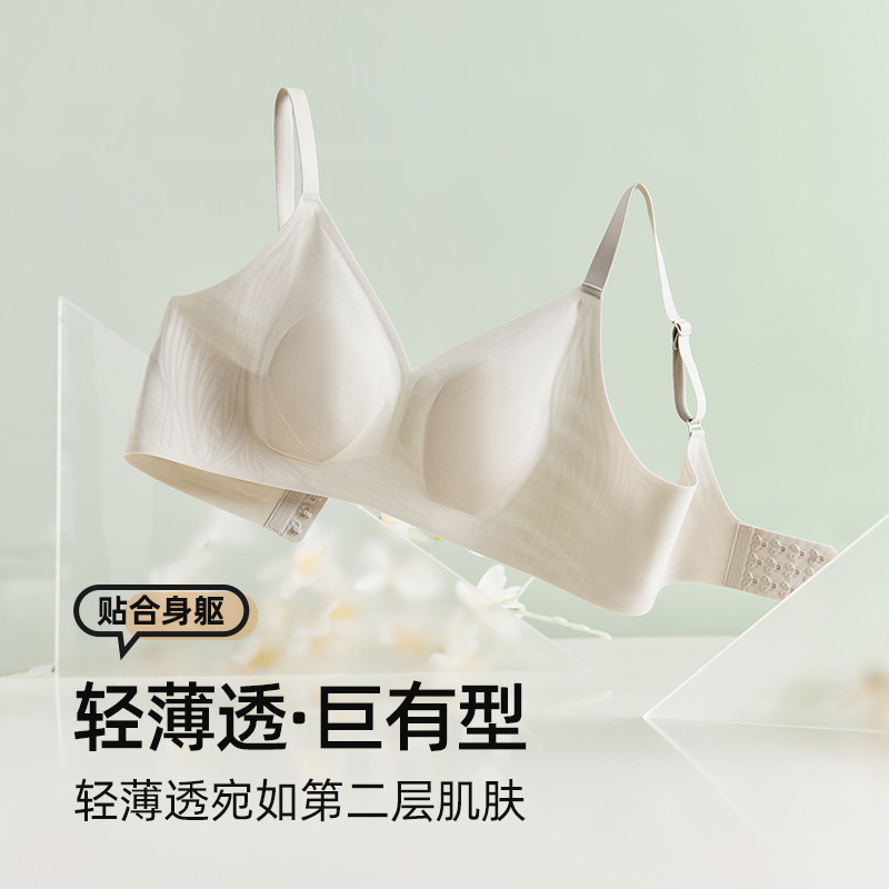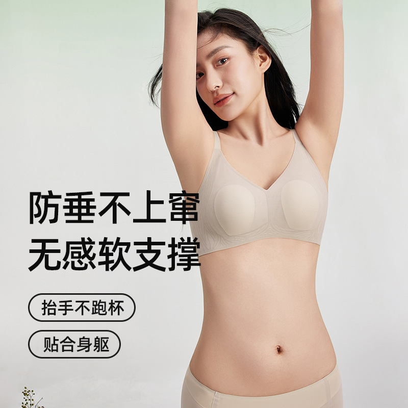 "product_name": "2025内衣大胸显小防下垂副乳文胸罩小胸小胸显大聚拢果冻条无痕内",