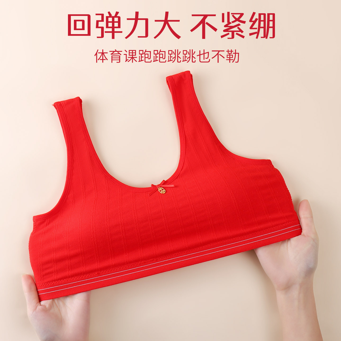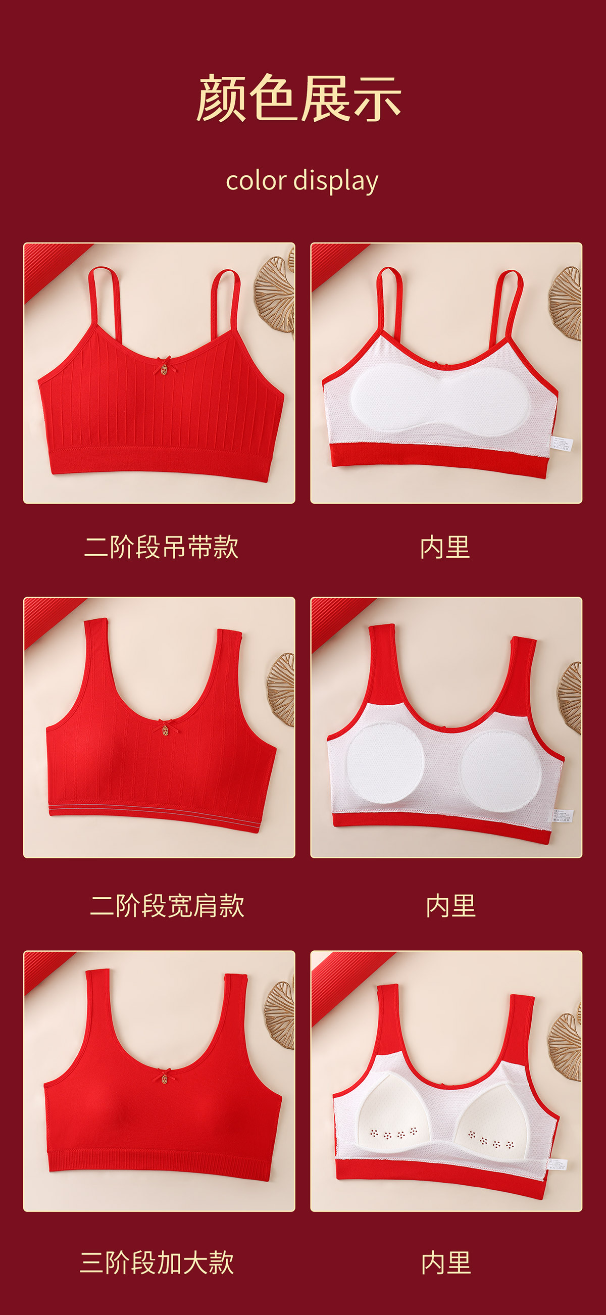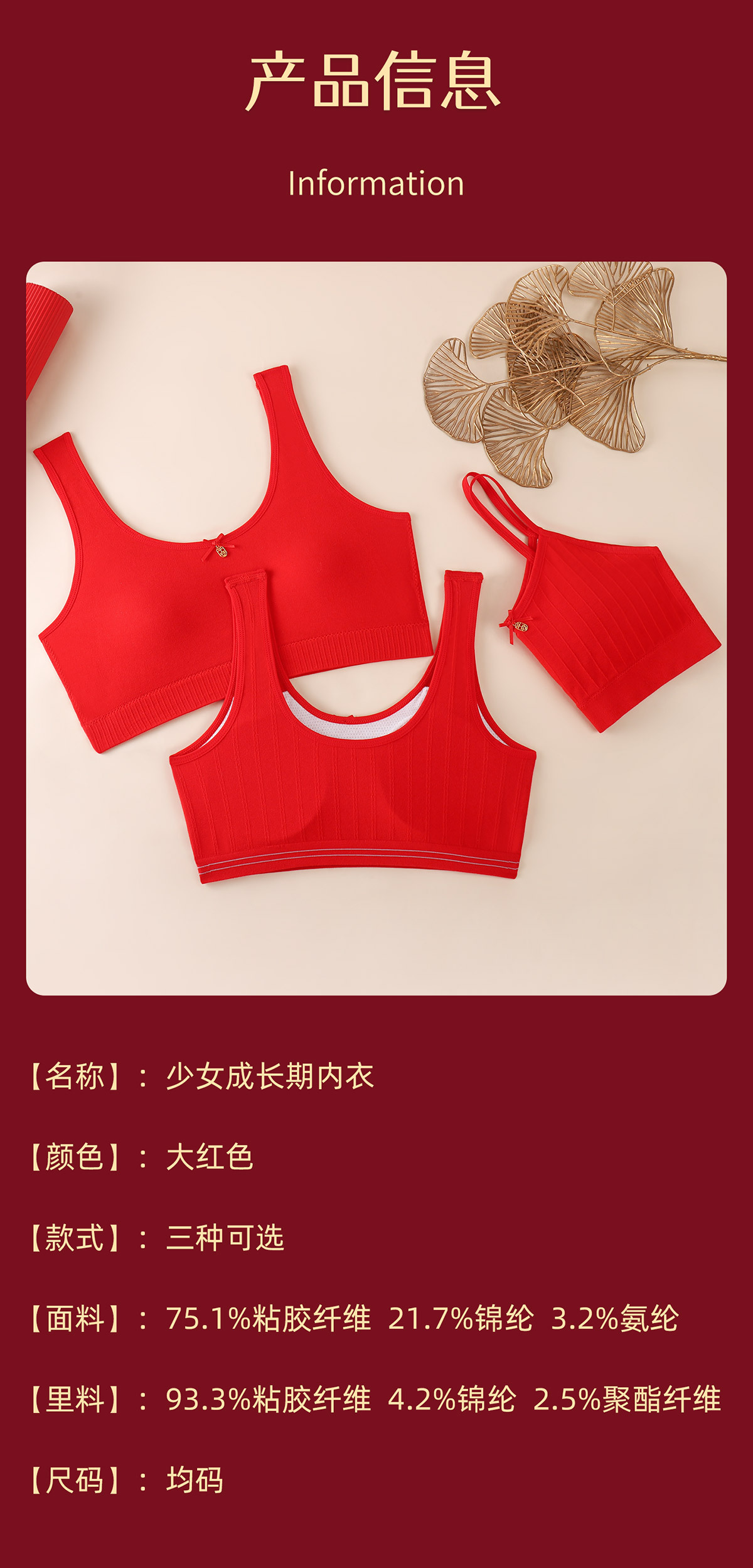 "product_name": "无缝本命年红色少女文胸舒适透气初高中内衣学生运动背心无钢圈",