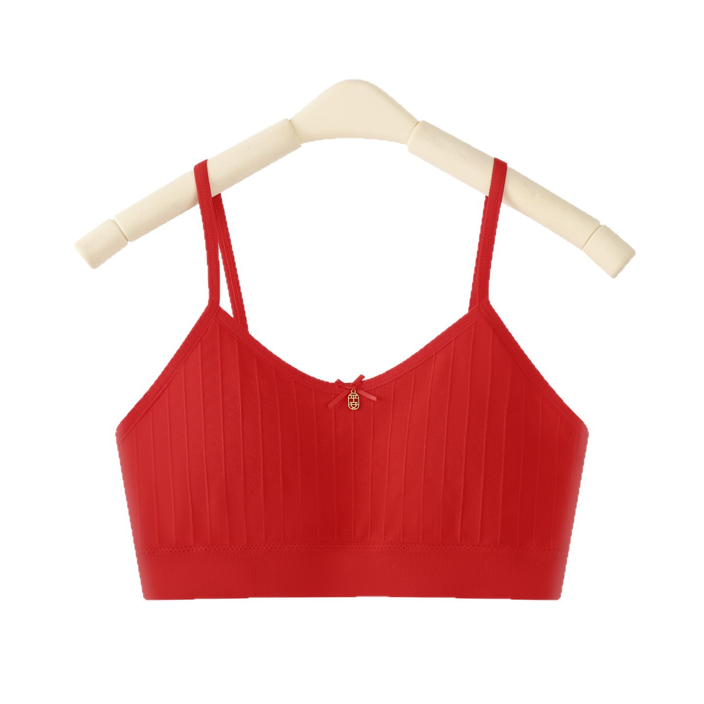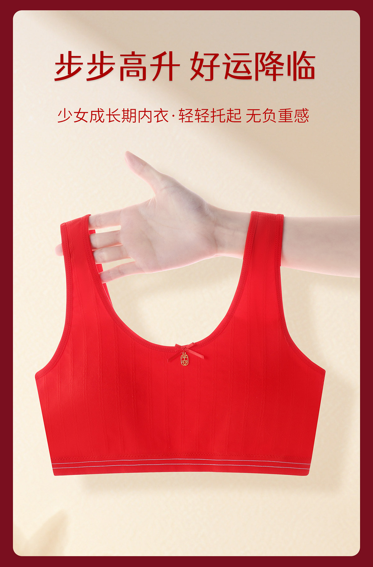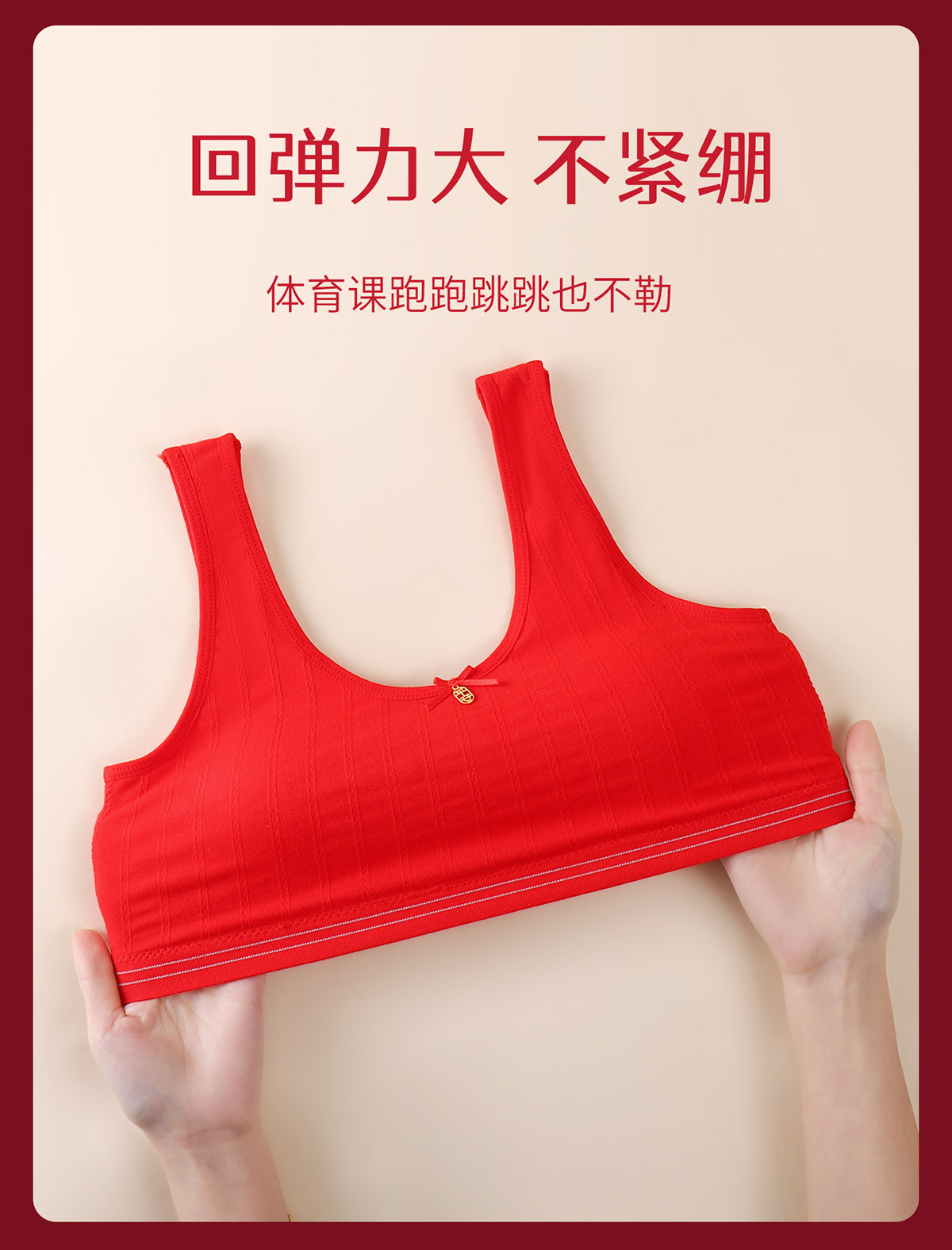 "product_name": "无缝本命年红色少女文胸舒适透气初高中内衣学生运动背心无钢圈",
